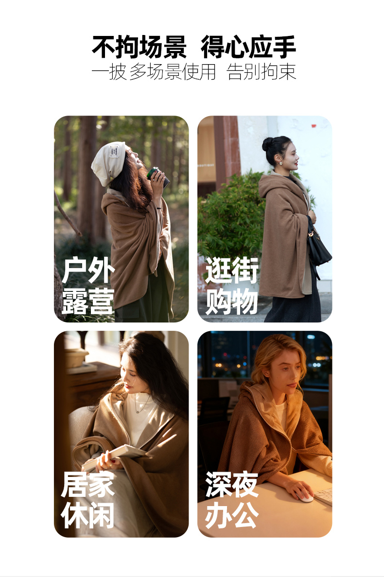 (总)喜相喜相逢家纺 保暖发热披肩 多功能多场景适用毯
