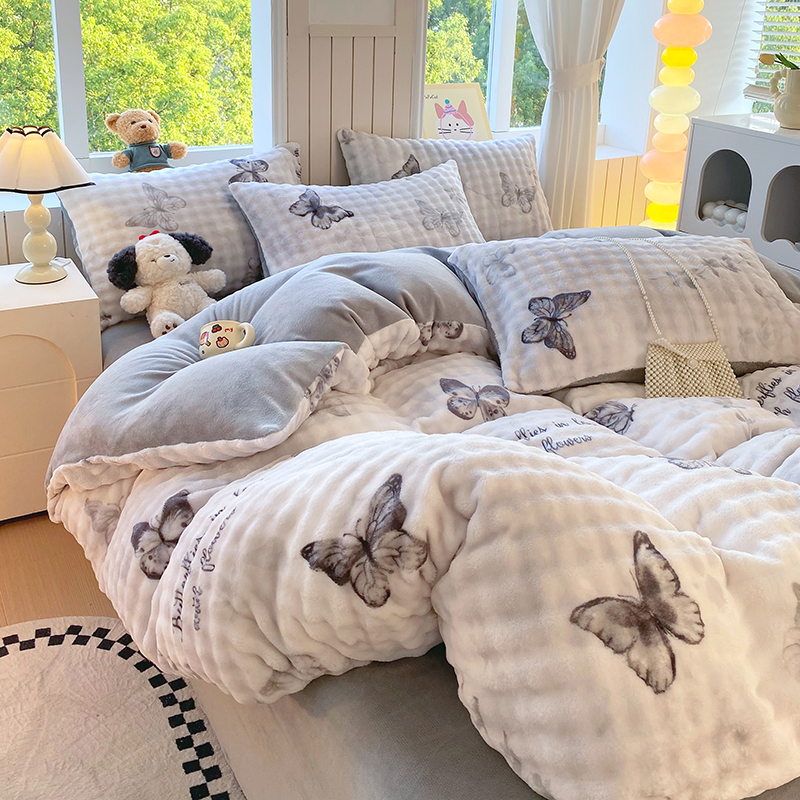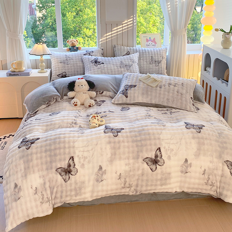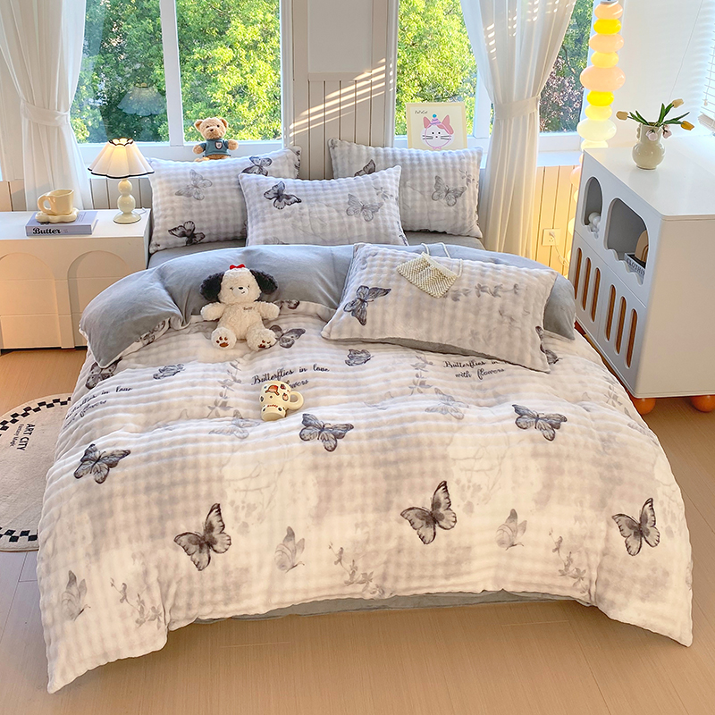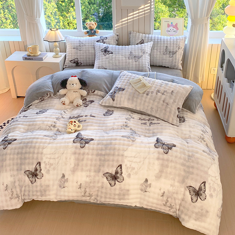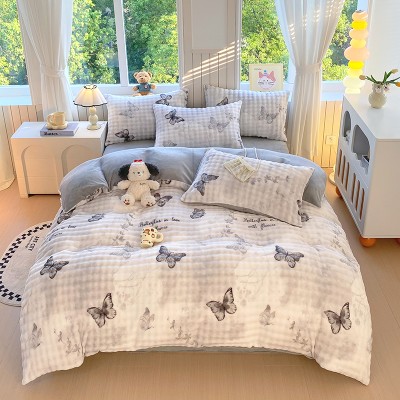 当前位置: 91家纺网 > 商品网购 > 床品套件 > 四件套 > 牛奶绒四件套 > 艾橙 2025新款泡泡牛奶绒加厚保暖印花四件套 简影蝴蝶