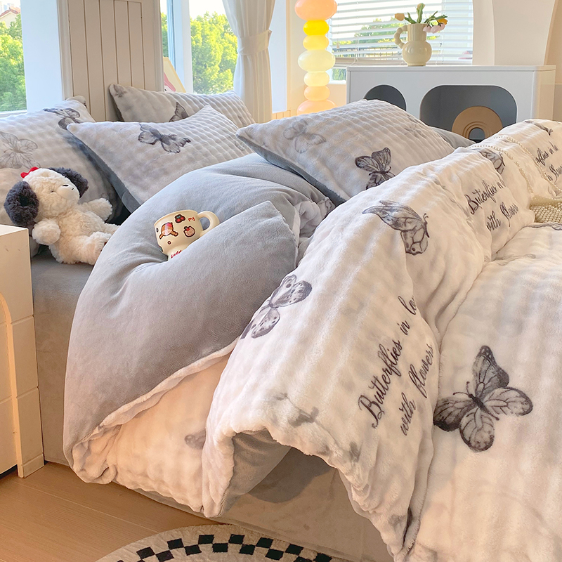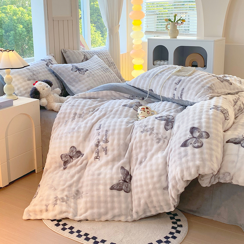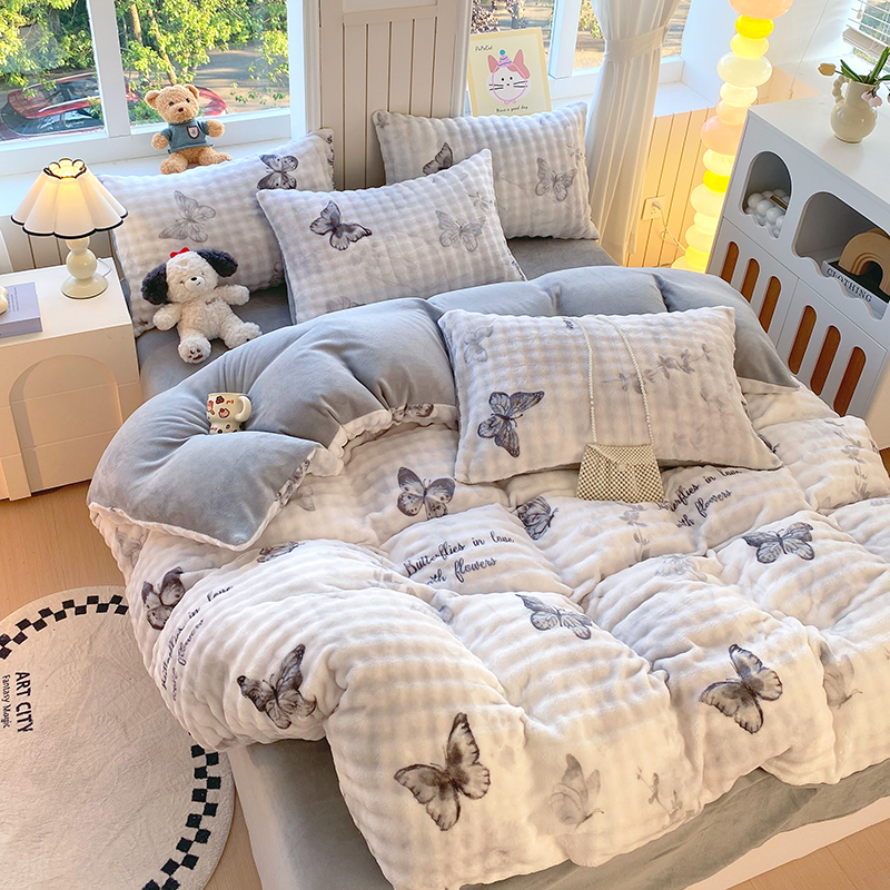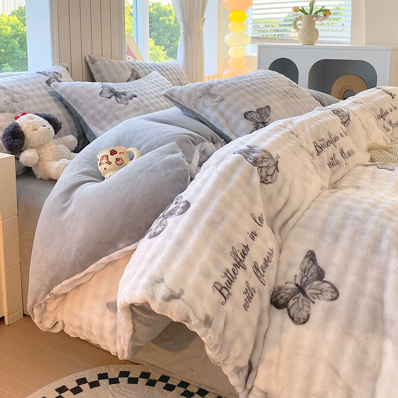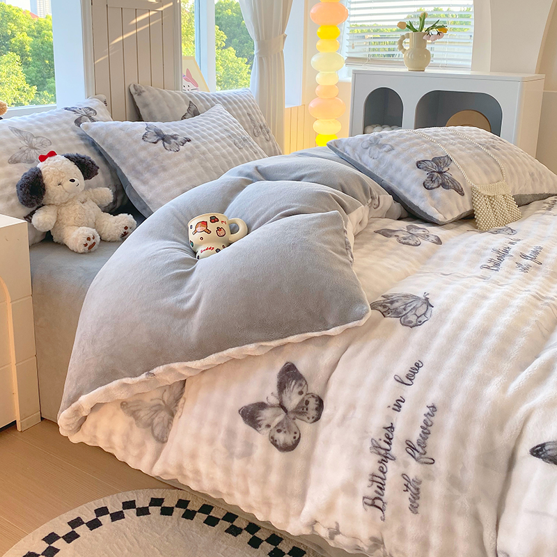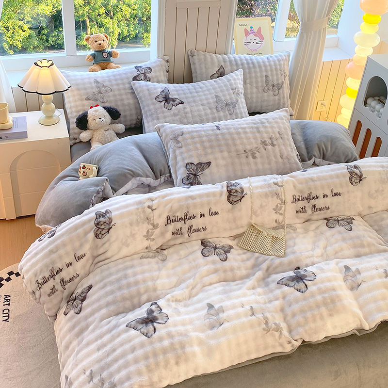 当前位置: 91家纺网 > 商品网购 > 床品套件 > 四件套 > 牛奶绒四件套 > 艾橙 2025新款泡泡牛奶绒加厚保暖印花四件套 简影蝴蝶