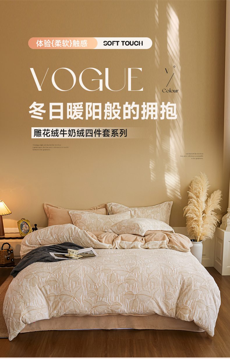 当前位置: 91家纺网 > 商品网购 > 床品套件 > 四件套 > 牛奶绒四件套 > 菡宝 【主推第三批 带质检报告】A类全消光230g雕花绒牛奶绒四件套支持定制定做尺寸 仲夏晨歌