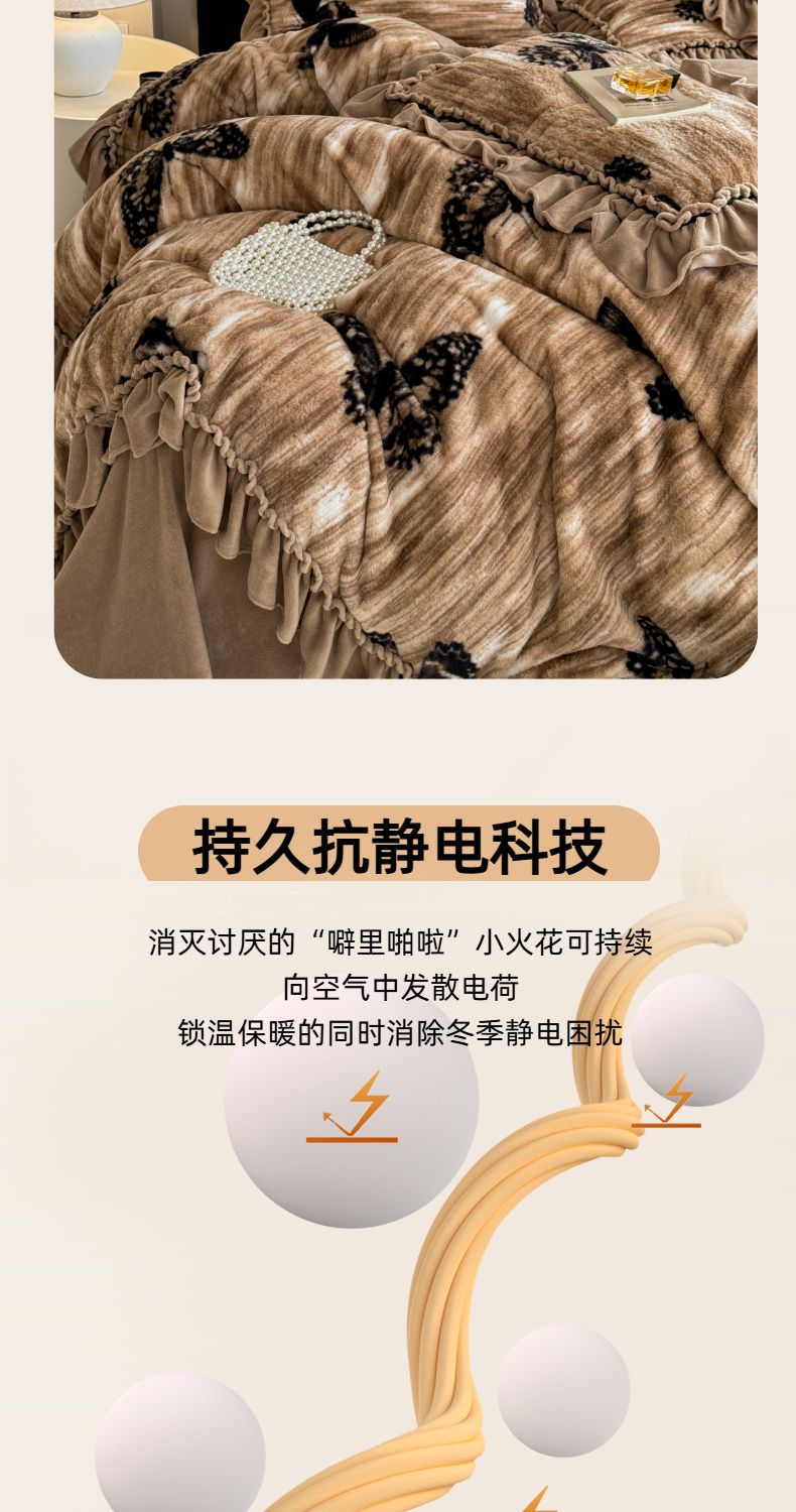 (总)米莱家纺 2025新款兔毛绒花边牛奶绒四件套,彩色圆点,繁花,粉黛,蝴蝶结,咖圆点,可爱兔,可爱熊,蔷薇
