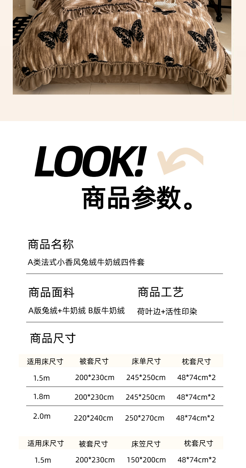 商品名称:(总)米莱家纺 2025新款兔毛绒法式花边四件套