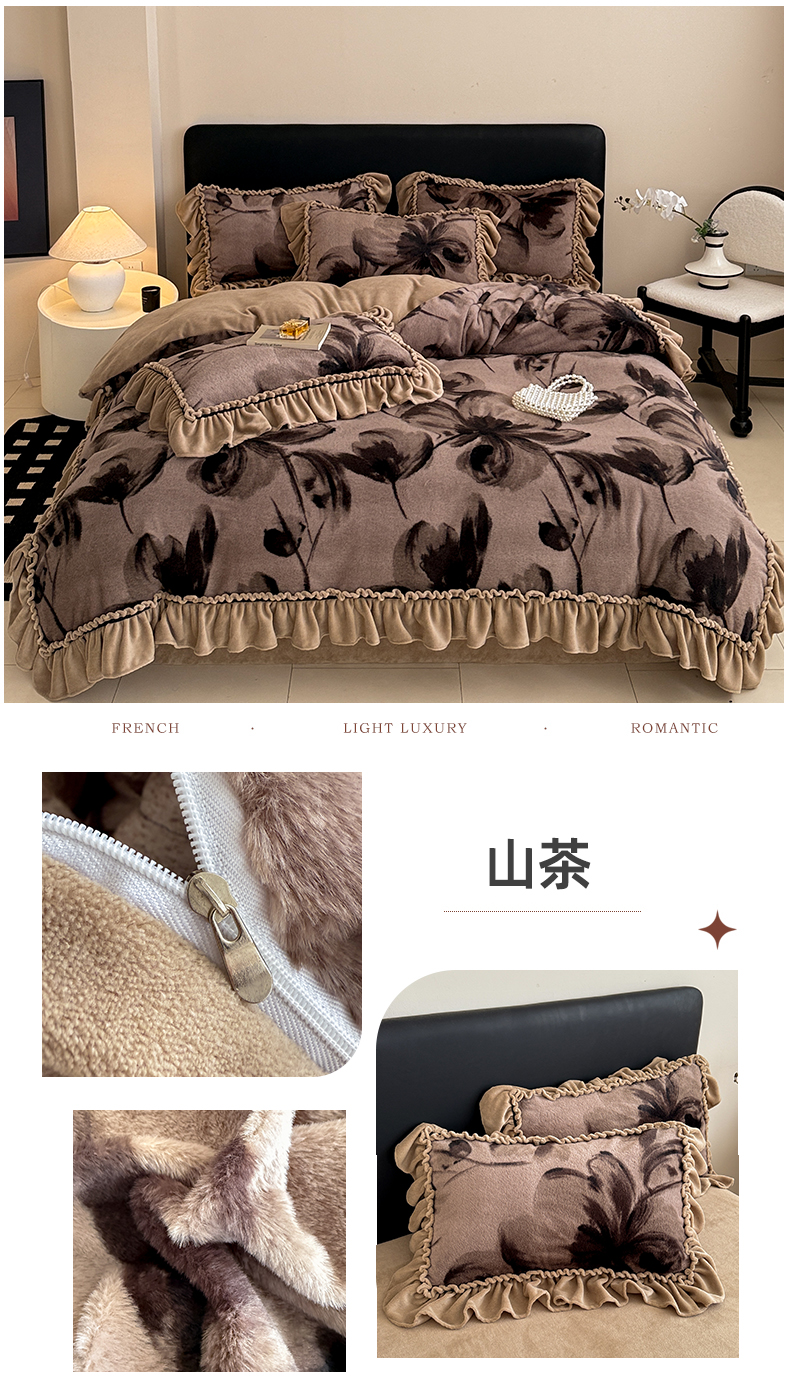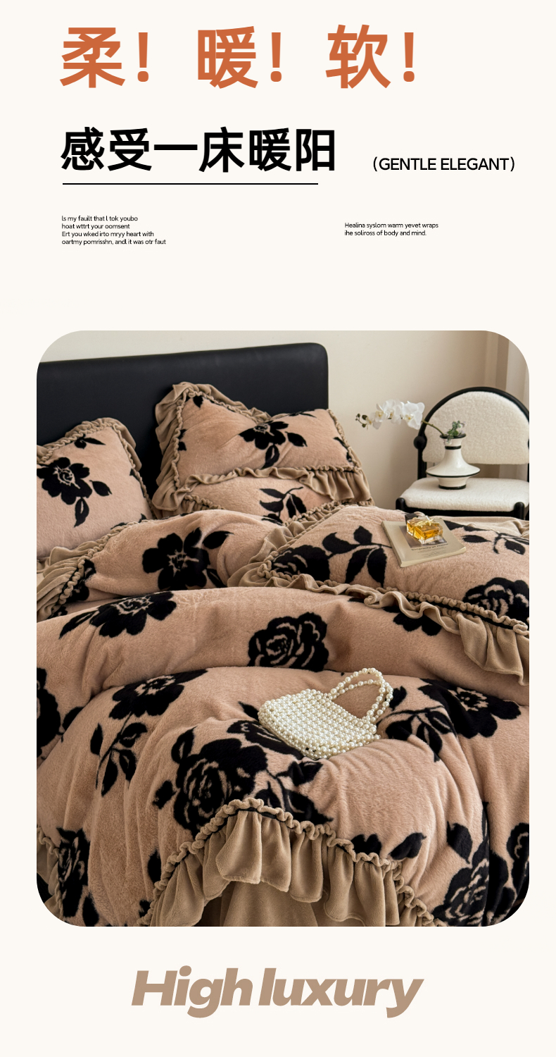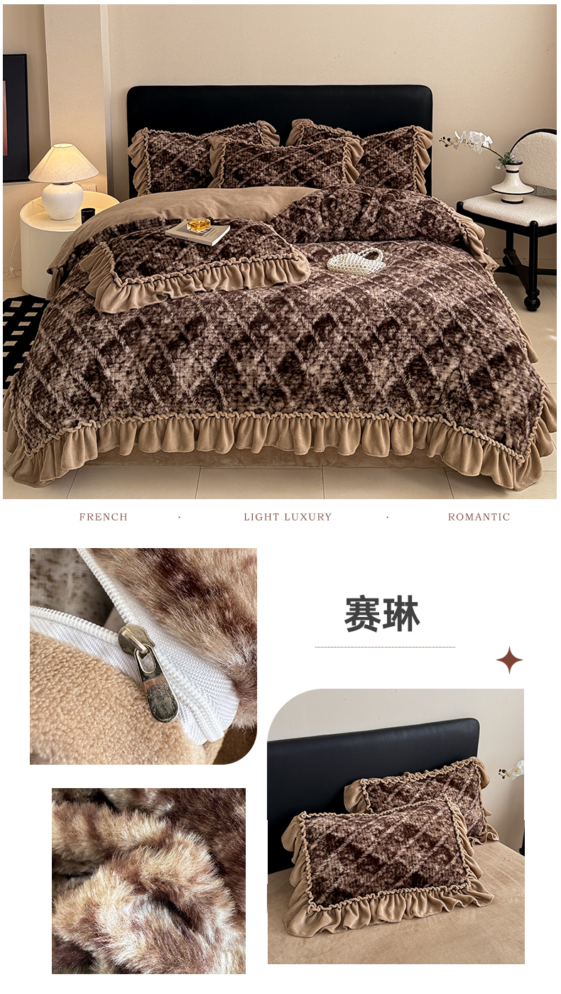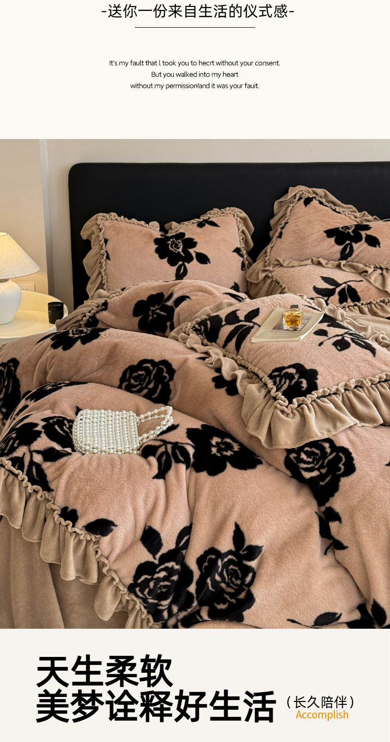 米莱家纺 2025新款兔毛绒法式花边四件套 倾城