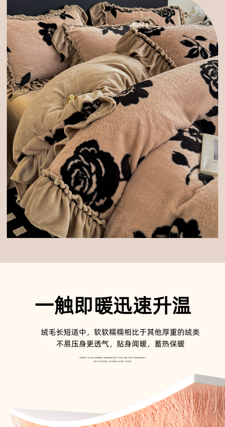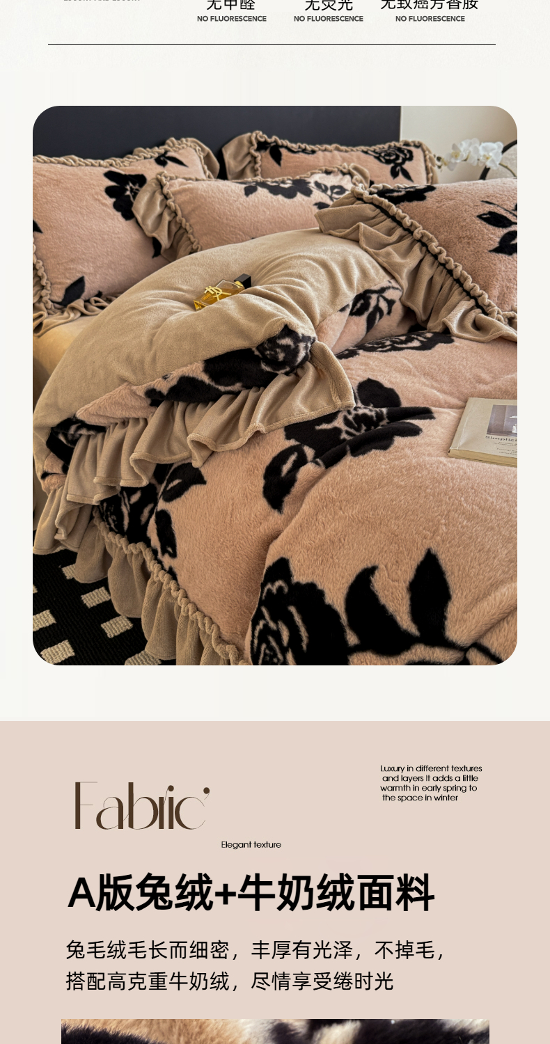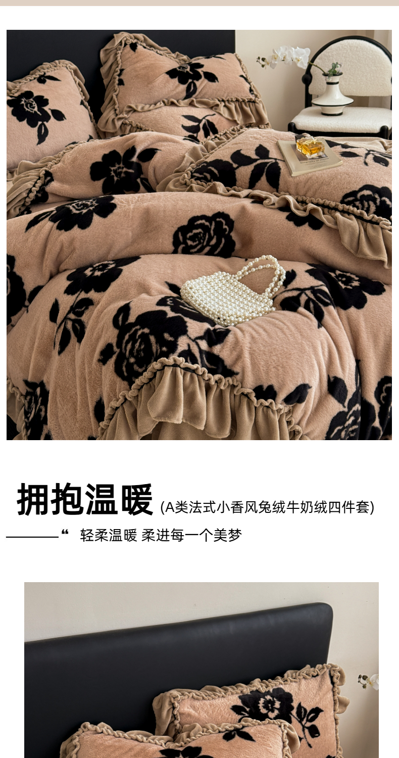 商品名称:米莱家纺 2025新款兔毛绒法式花边四件套 倾城