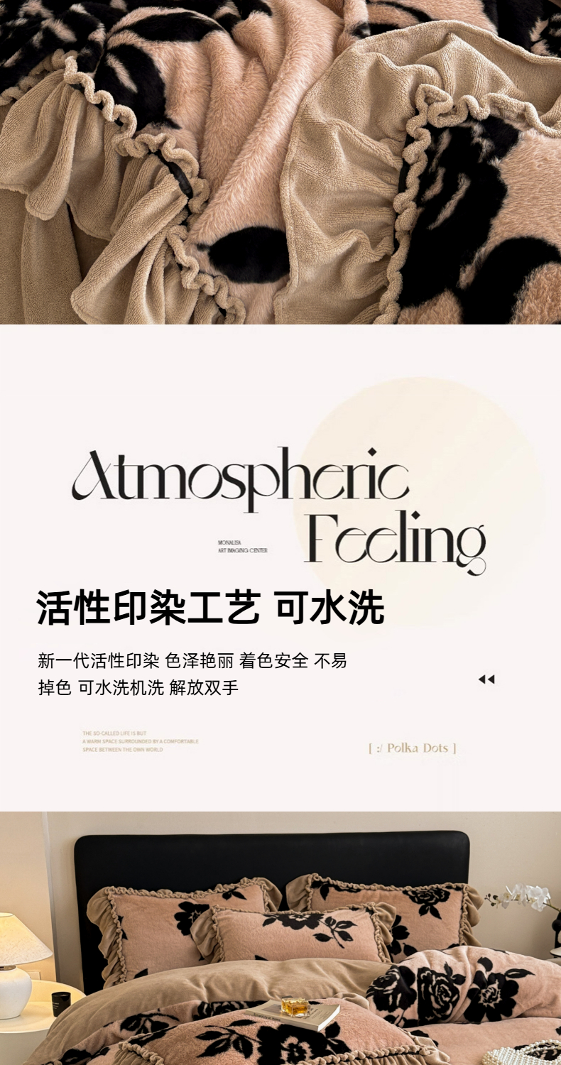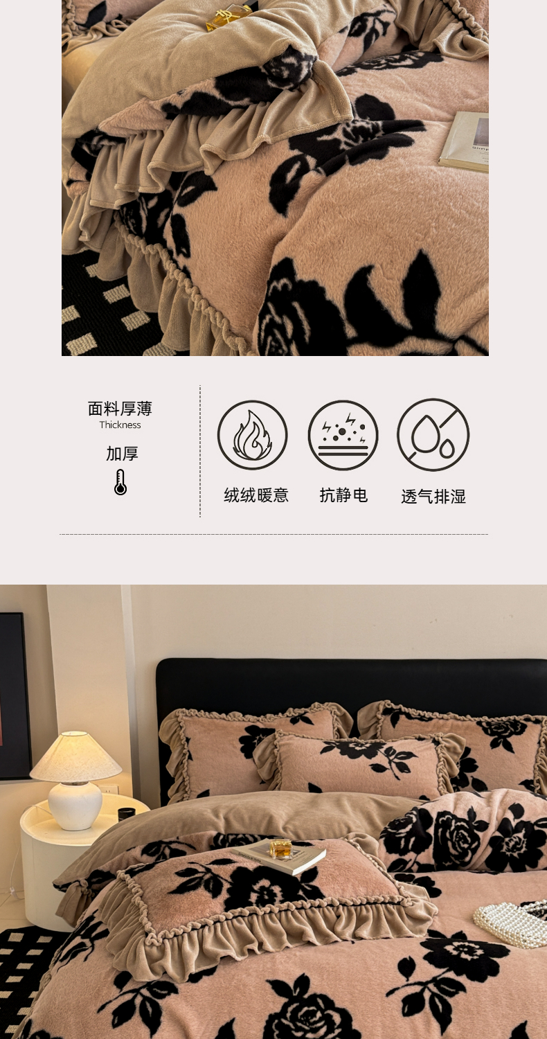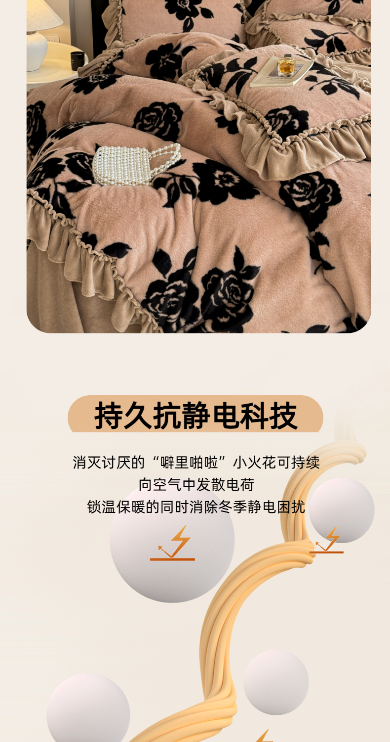 (总)米莱家纺 2025新款兔毛绒花边牛奶绒四件套,彩色圆点,繁花,粉黛,蝴蝶结,咖圆点,可爱兔,可爱熊,蔷薇