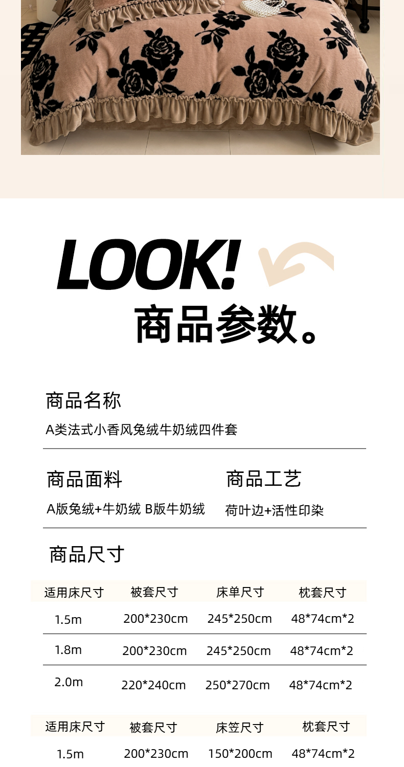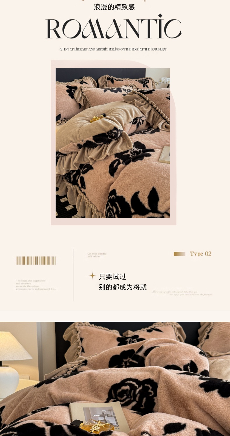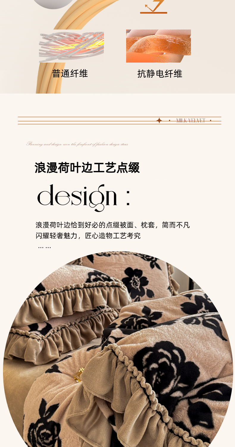(总)米莱家纺 2025新款兔毛绒花边牛奶绒四件套,彩色圆点,繁花,粉黛,蝴蝶结,咖圆点,可爱兔,可爱熊,蔷薇