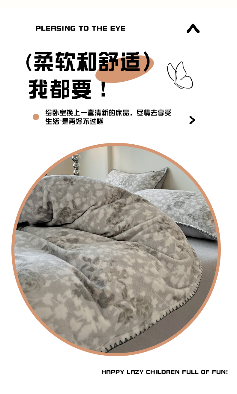 (总)忆生活家纺 2025秋冬新品软糯缇肤绒印花贝壳边四件套,卡拉-灰,开心熊-米,南笙-咖,南笙-绿,浅夏-咖,素影-酒红,素影-紫,小樱桃-酒红,叶茂-驼