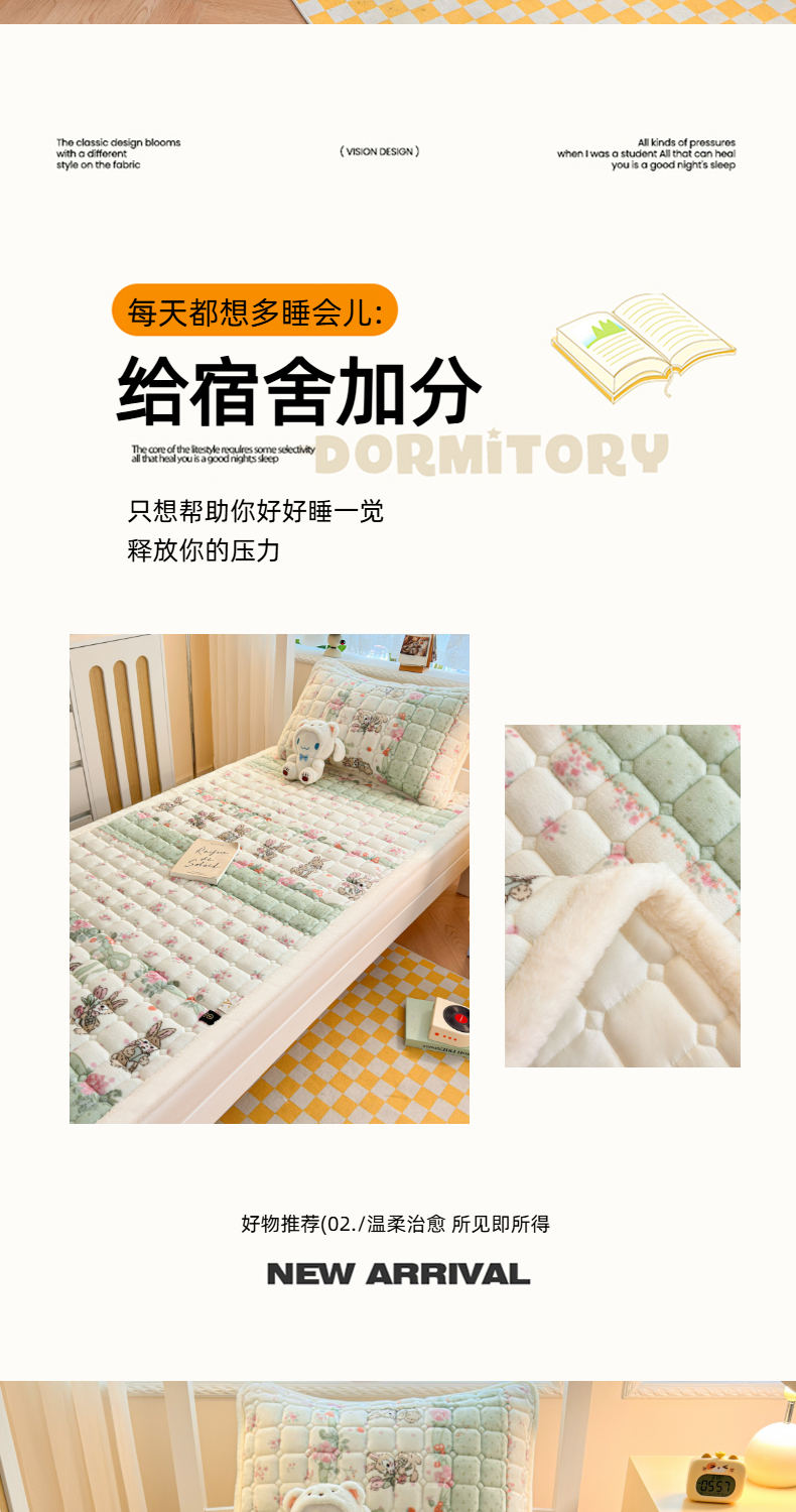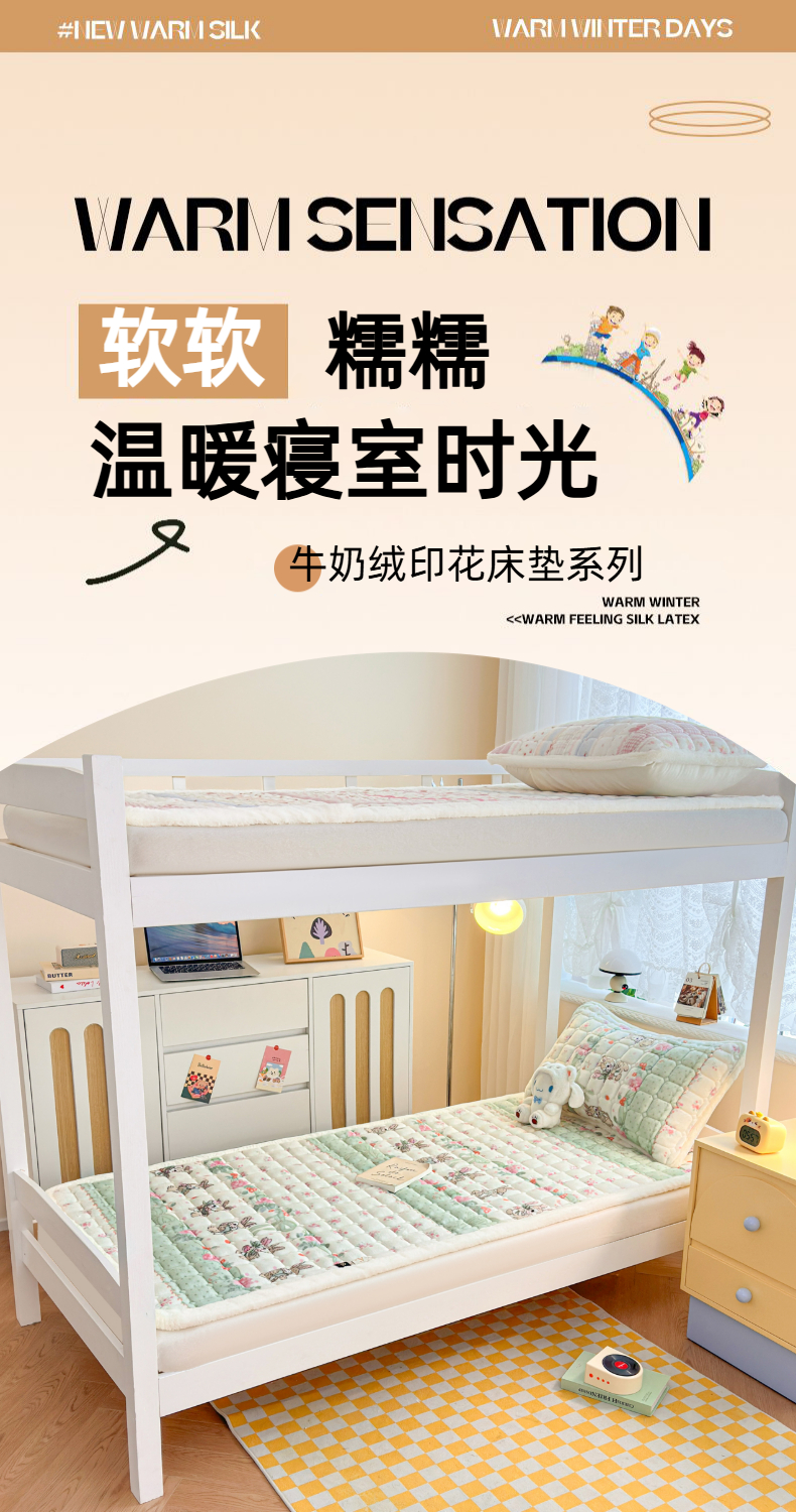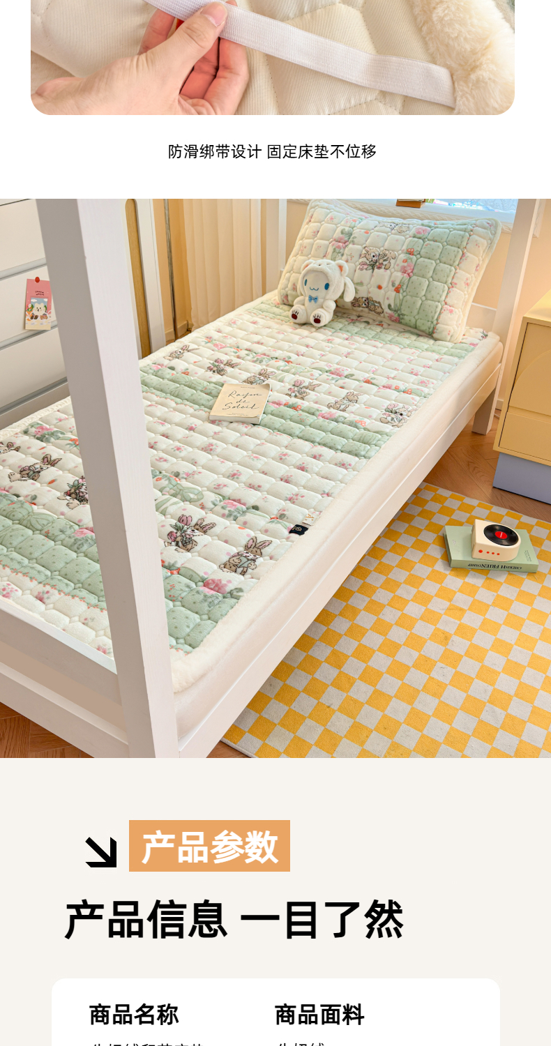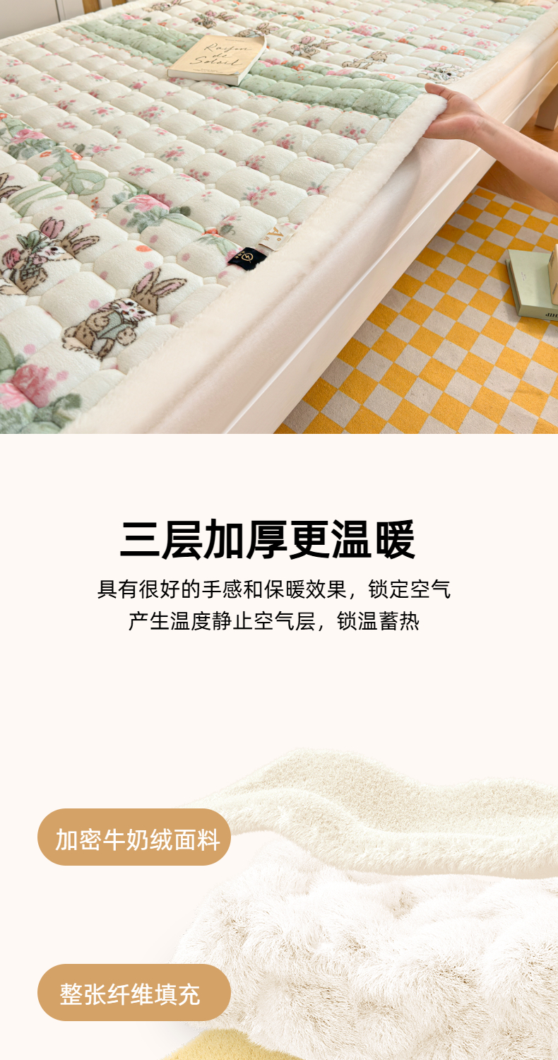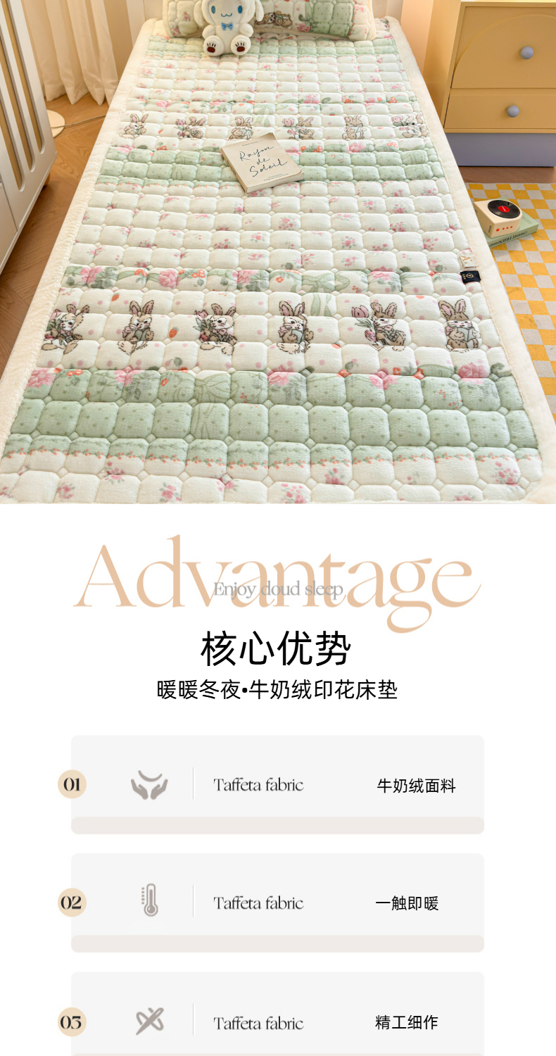 当前位置: 91家纺网 > 商品网购 > 床垫/床褥 > 普通床垫 > 爱屋及屋 2025新款牛奶绒印花床垫-宿舍床 可爱萌兔
