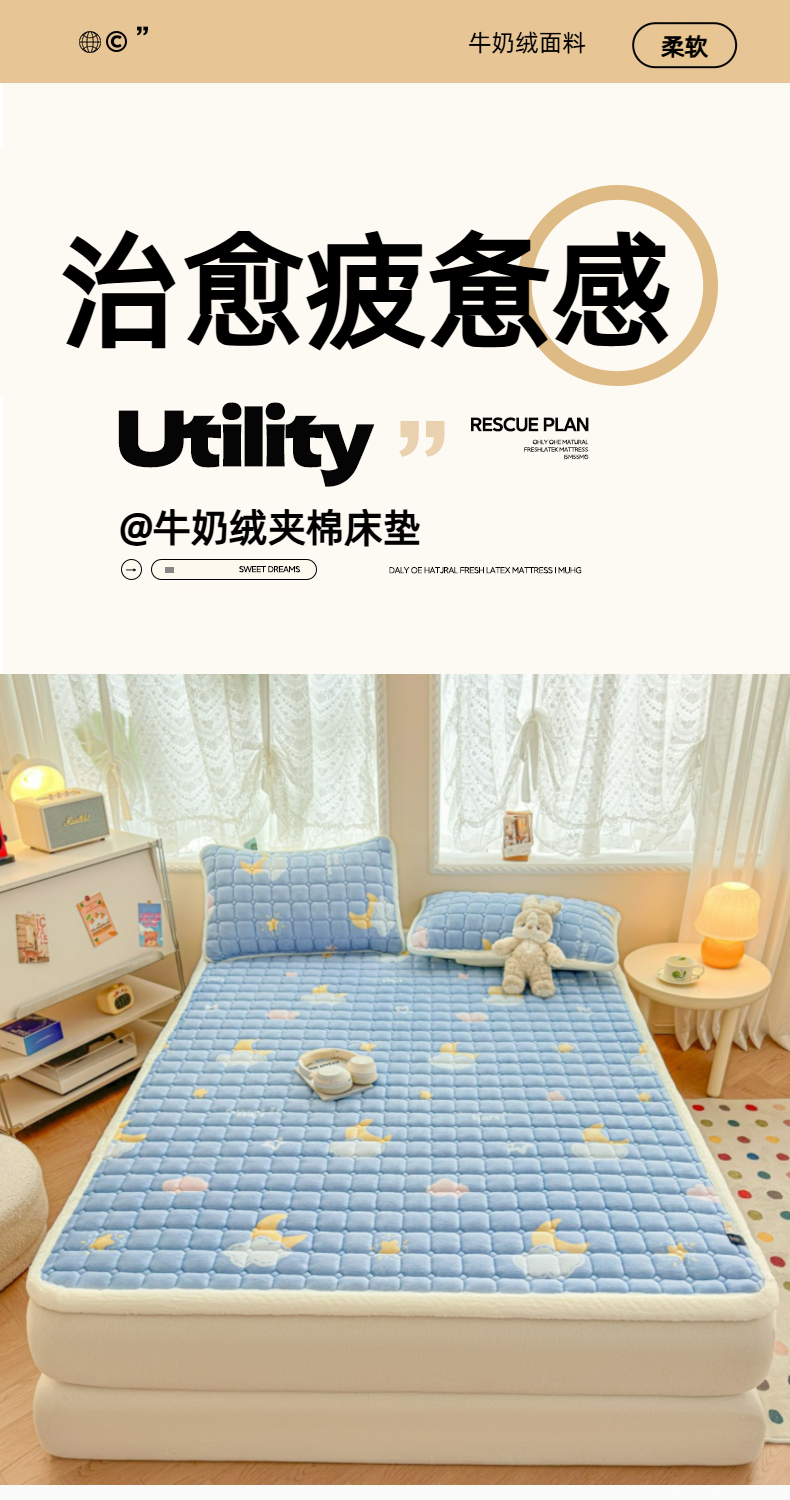 当前位置: 91家纺网 > 商品网购 > 床垫/床褥 > 普通床垫 > 爱屋及屋 2025新款牛奶绒印花床垫-大床款 蓝天白云