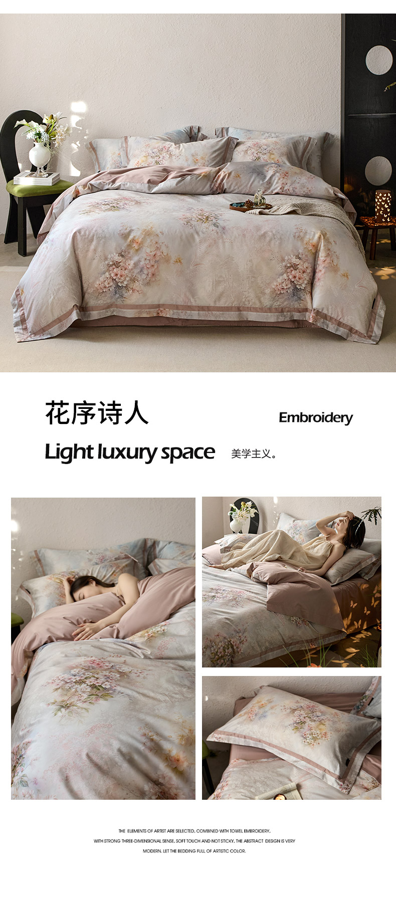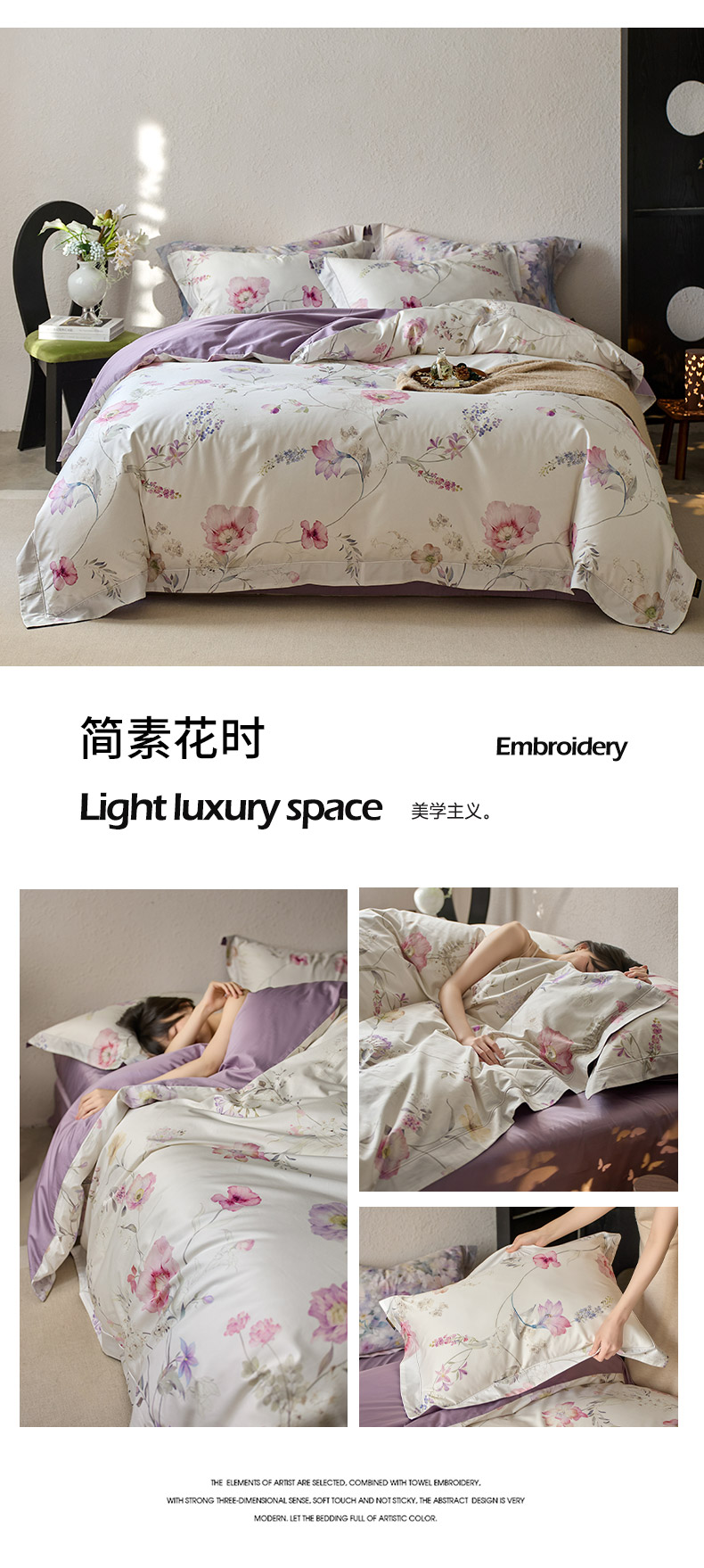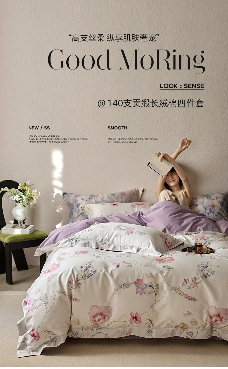 当前位置: 91家纺网 > 商品网购 > 床品套件 > 四件套 > 长绒棉四件套 > 轩和家居 2025新款70SA类轻奢长绒棉纯棉花四件套正品YKK拉链+精品做工 第一组 简素花时