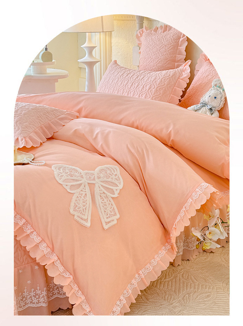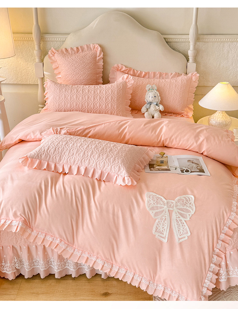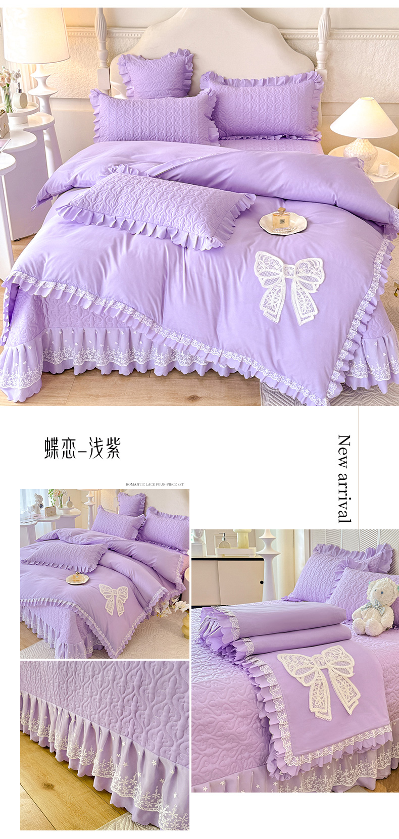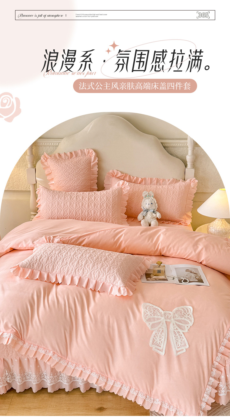 商品名称:(总)后庭寝室 2025新款法式公主风亲肤床盖四件套-蝶恋系列