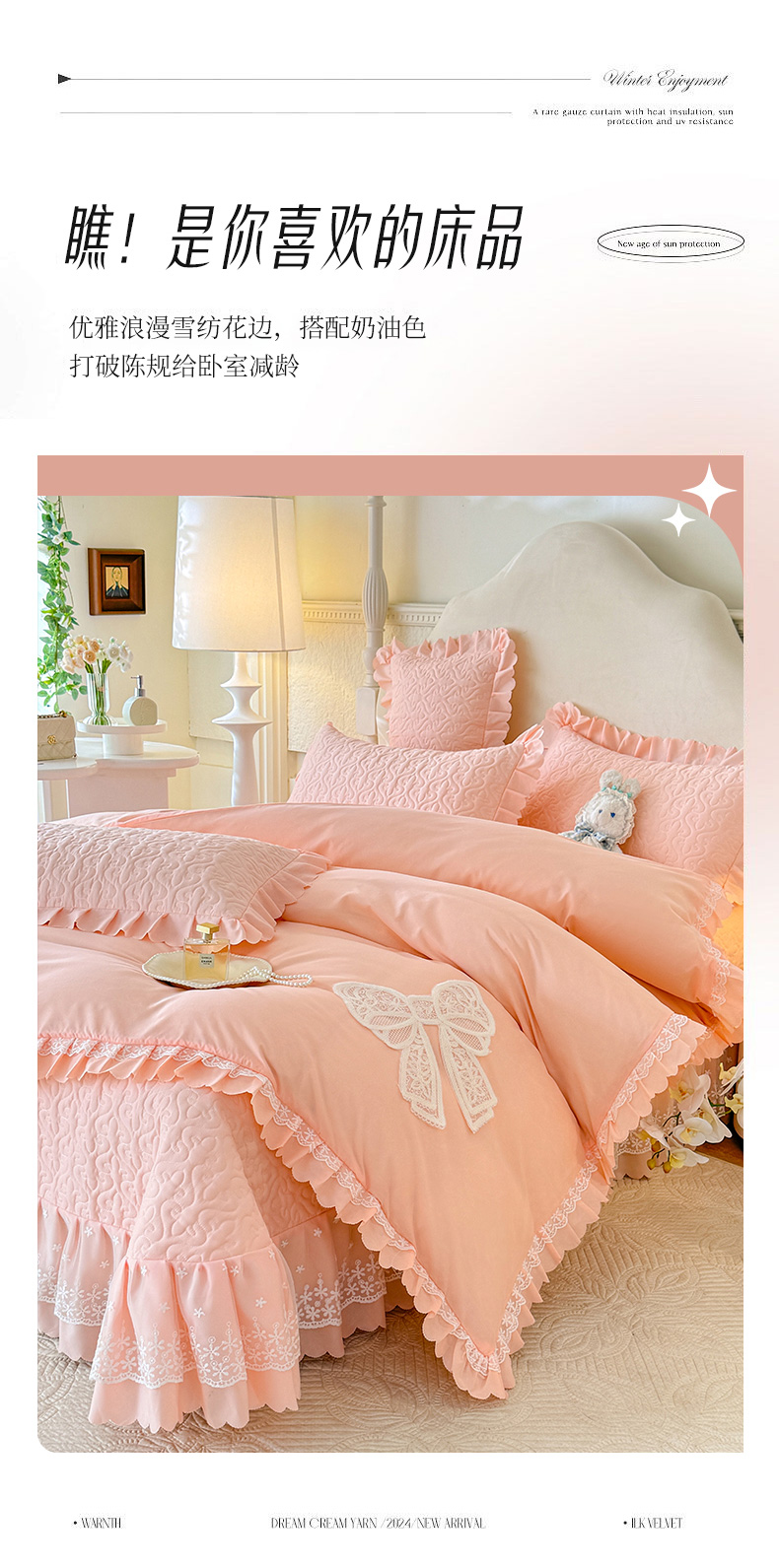 (总)后庭寝室 2025新款韩式花边牛奶绒四件套-香香公主系列,香香公主-嫩玉,香香公主-粉色,香香公主-豆沙,香香公主-粉玉,香香公主-湖蓝,香香公主-暖黄,香香公主-浅灰,香香公主-浅蓝,香香公主-浅紫,香香公主-玉色