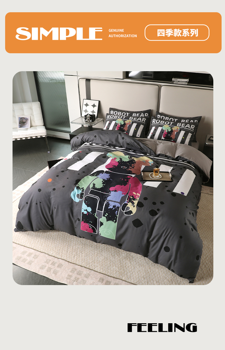 (总)摩卡(乐趣) 2025新款现代简约网红款四季棉四件套,电机熊,多巴胺,黑白迪,机器熊,咔芬,流沙,萌迪,萌熊队长,七彩熊,棋盘格公仔,太阳花粉,涂鸦熊,星空,熊头白,熊仔白,熊仔桔,熊仔咖