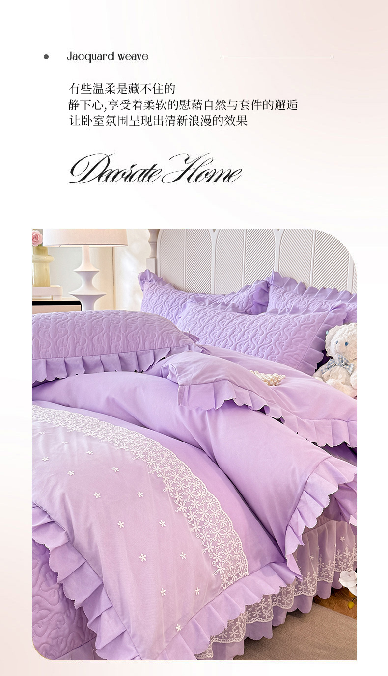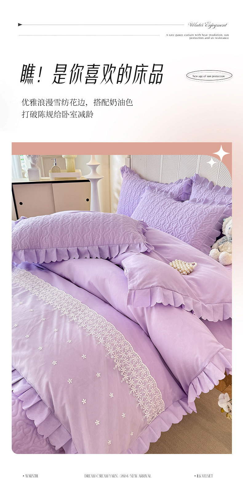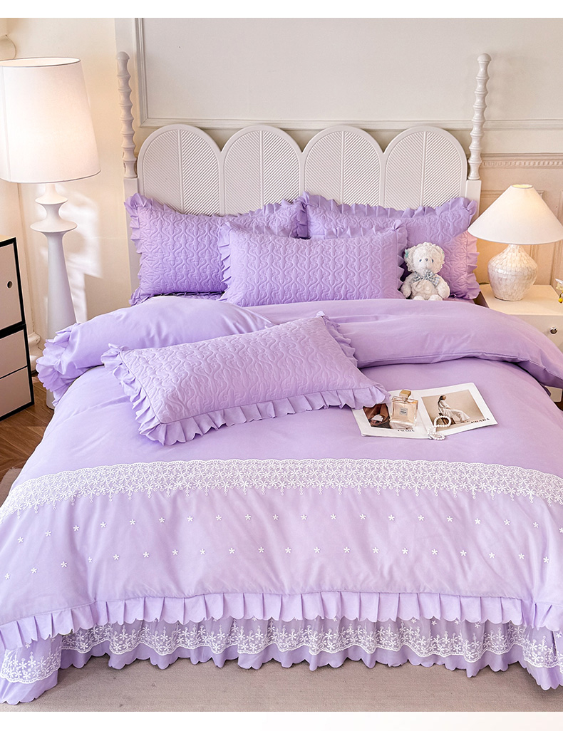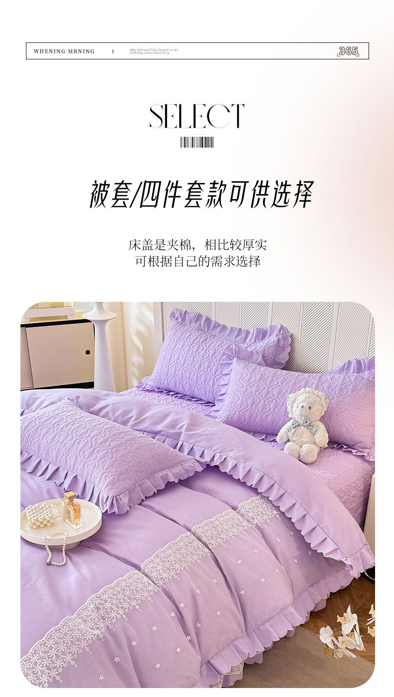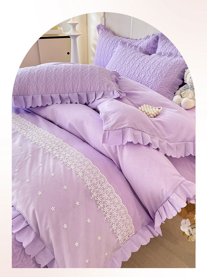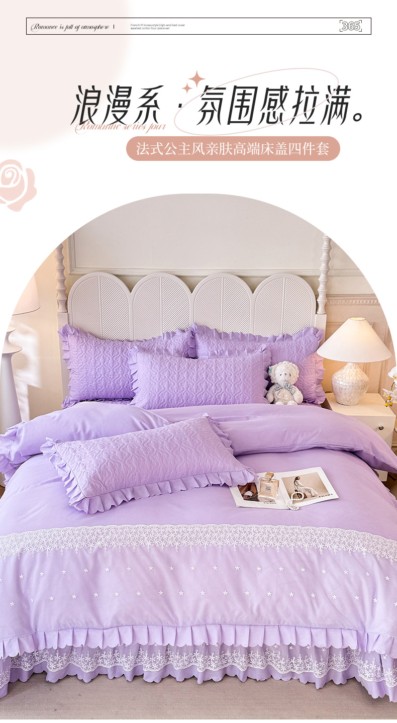 当前位置: 91家纺网 > 商品网购 > 床品套件 > 四件套 > 其它四件套 > 后庭寝室 2025新款法式公主风亲肤床盖四件套-满天星系列 满天星-浅紫