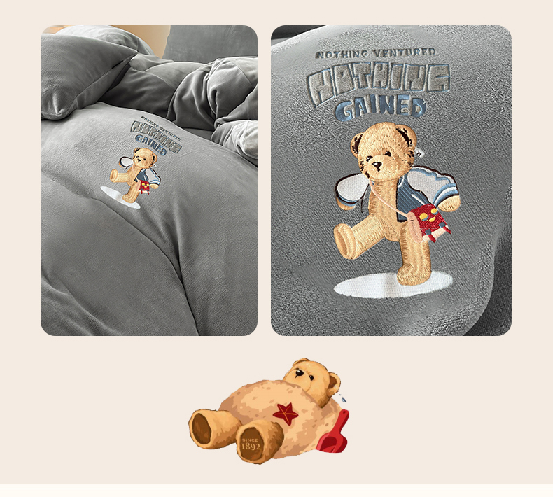 (总)泰迪爱兰Teddy ISLAND 2025新款IP绣花牛奶绒刺绣套件,豆沙+浅灰,奶黄+浅咖,奶油白+清绿,奶油白+星空蓝,浅灰+银灰,清绿+银灰,珊瑚粉+银灰,星空蓝+浅灰,星空蓝+银灰,薰衣紫+浅灰