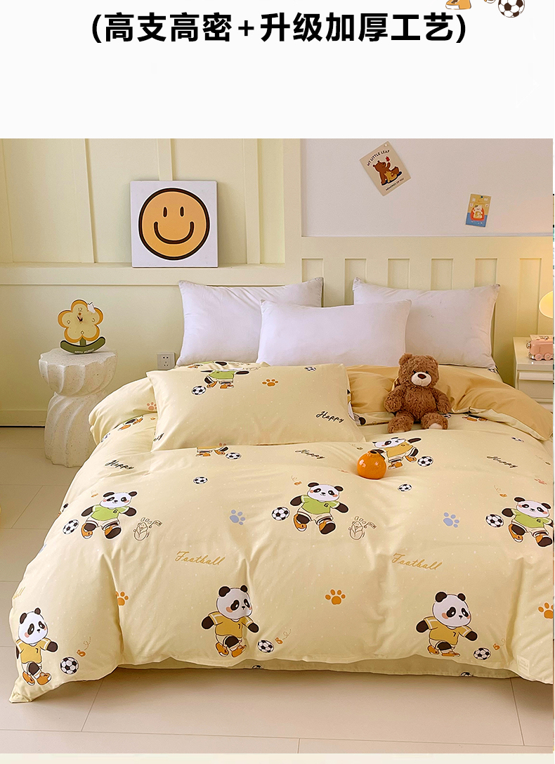 商品名称:金鑫汇家纺 2025新款A类全棉纯棉印花大床图单被套 被套单件 足球争霸赛-黄