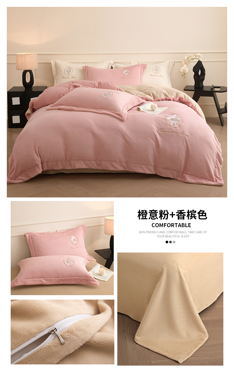当前位置: 91家纺网 > 商品网购 > 床品套件 > 四件套 > 牛奶绒四件套 > 梦幻之城 2025新款牛奶绒系列四件套-沁雅 沁雅-橙意粉+香槟色