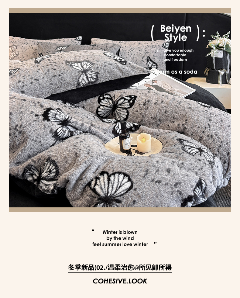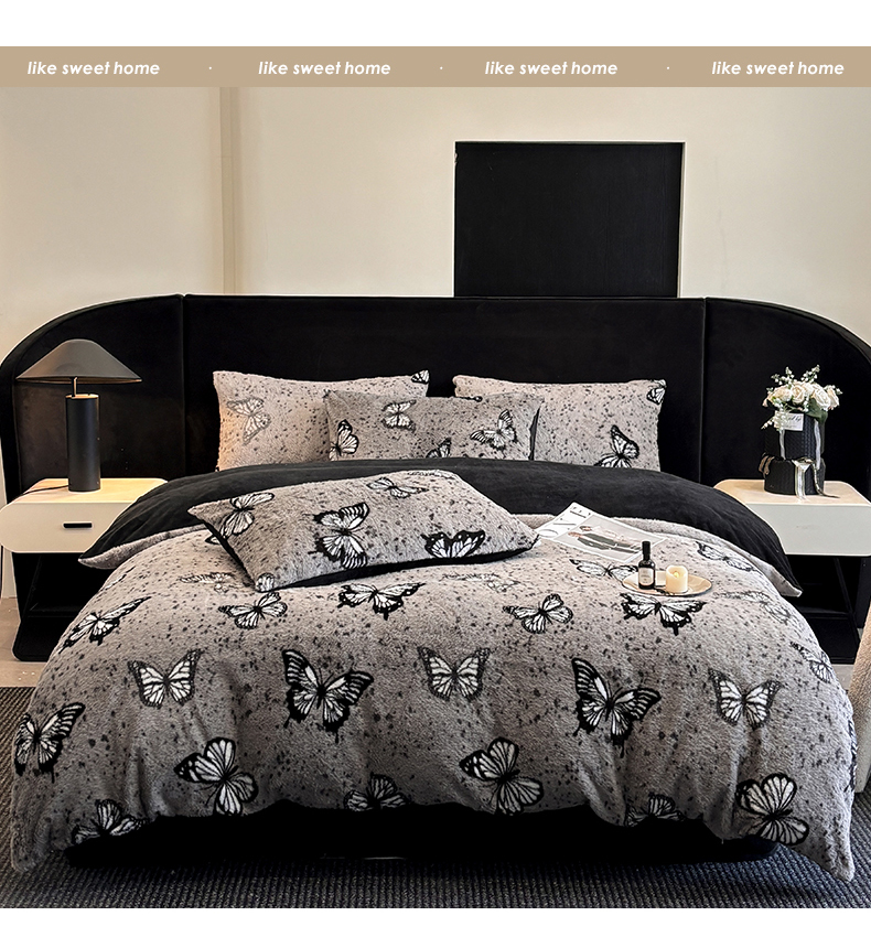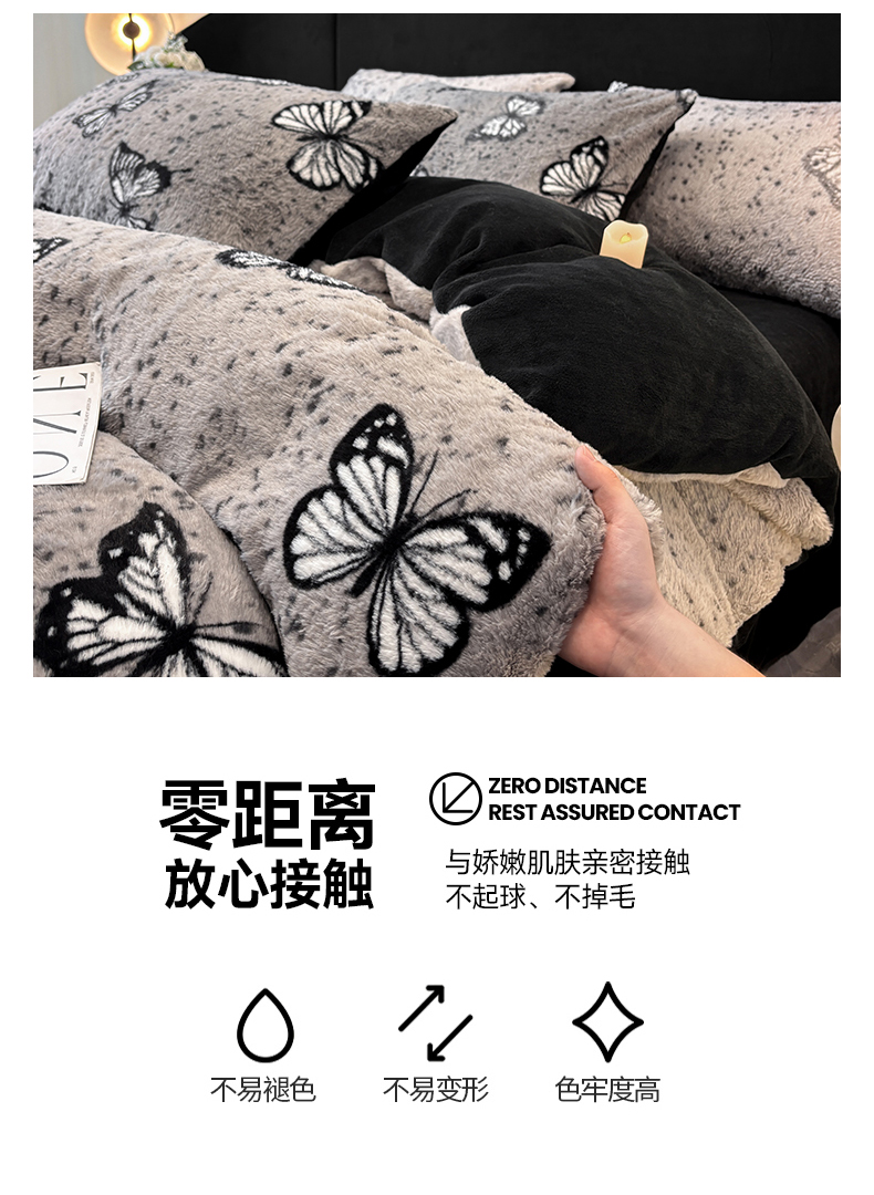 当前位置: 91家纺网 > 商品网购 > 床品套件 > 四件套 > 牛奶绒四件套 > 莉莉安家纺 2025新款加厚保暖兔毛绒四件套 美拉德-蝶舞