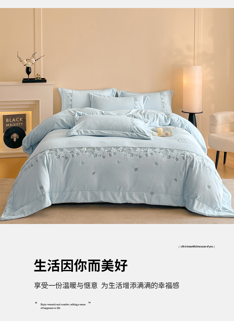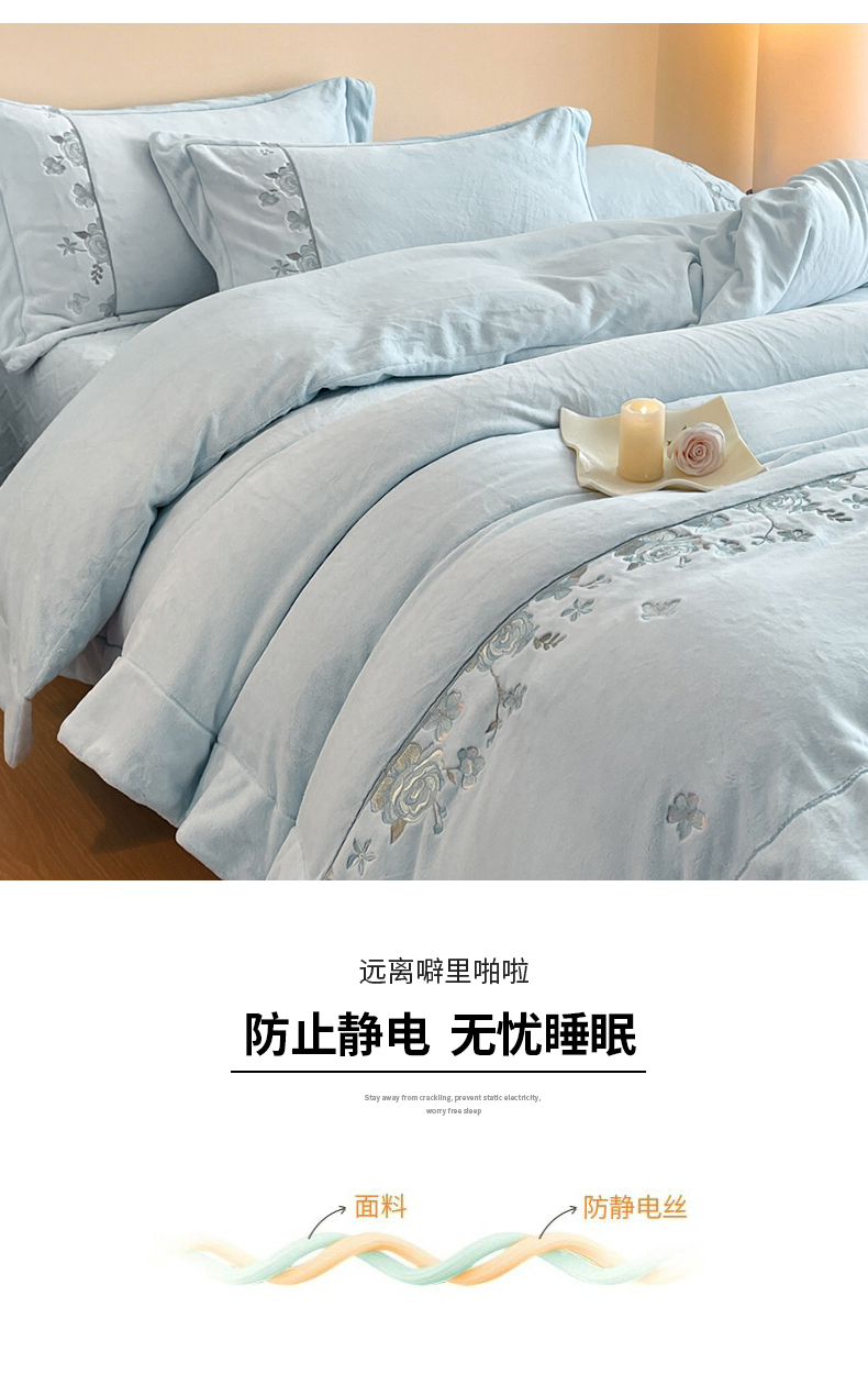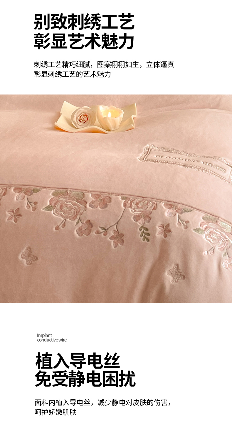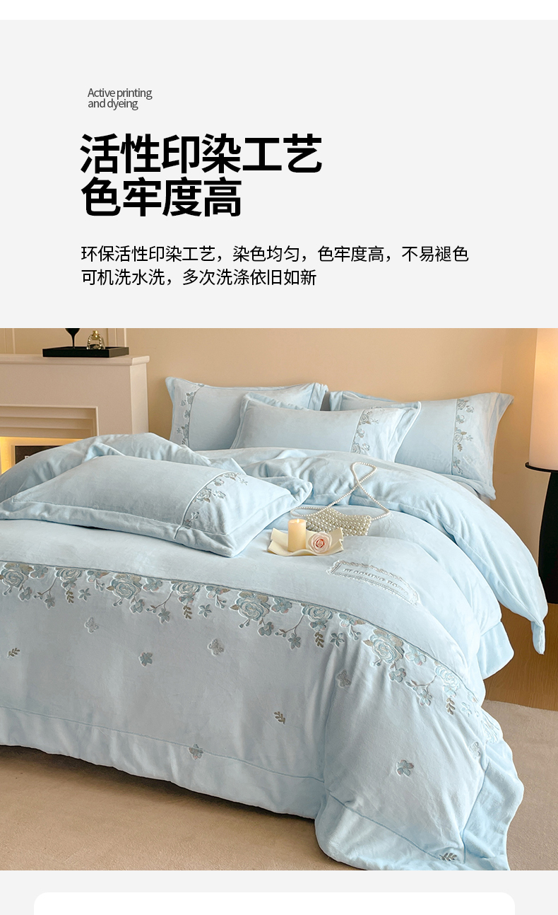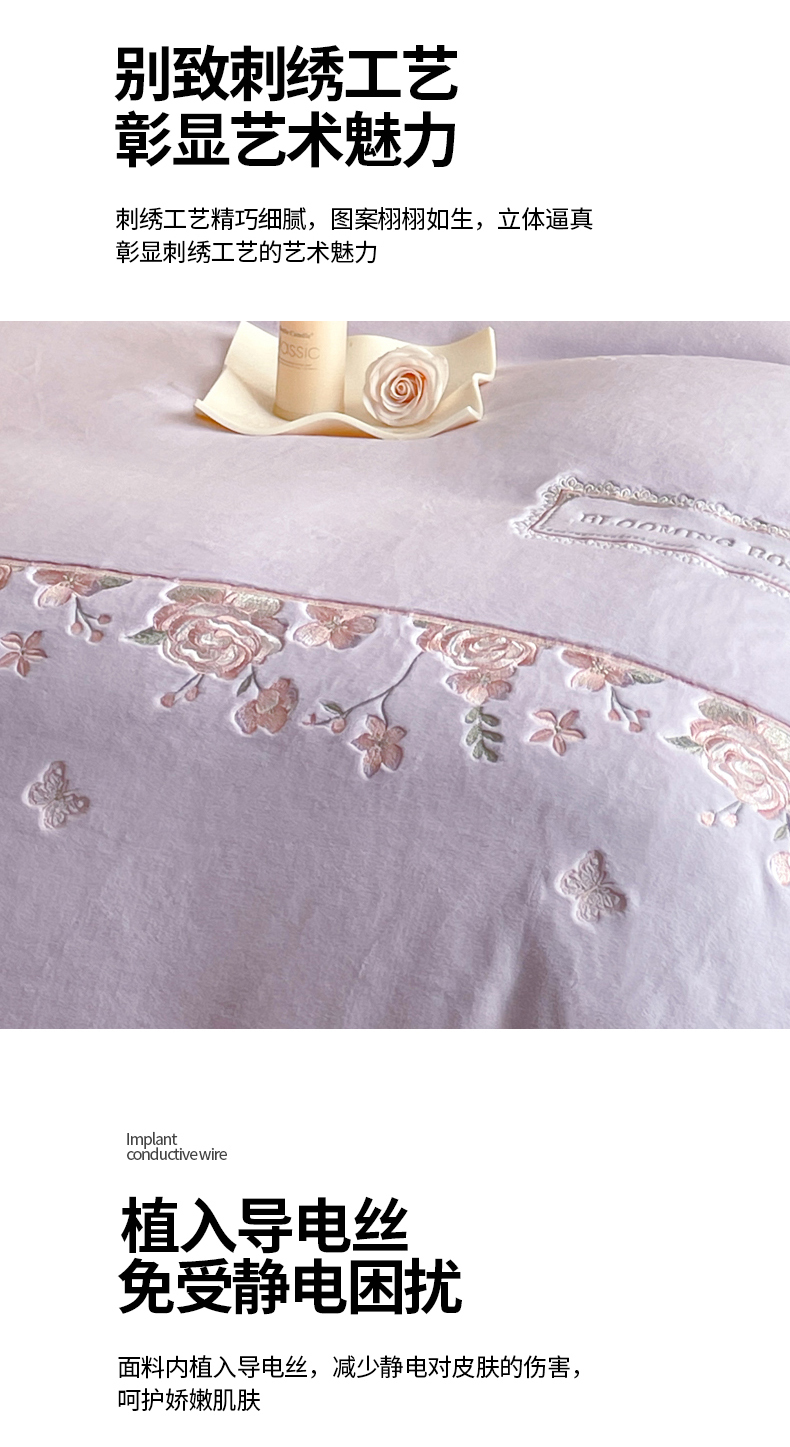 商品名称:(总)控价 2025新款 床盖款240克A类全消光刺绣牛奶绒四件套-花意浓