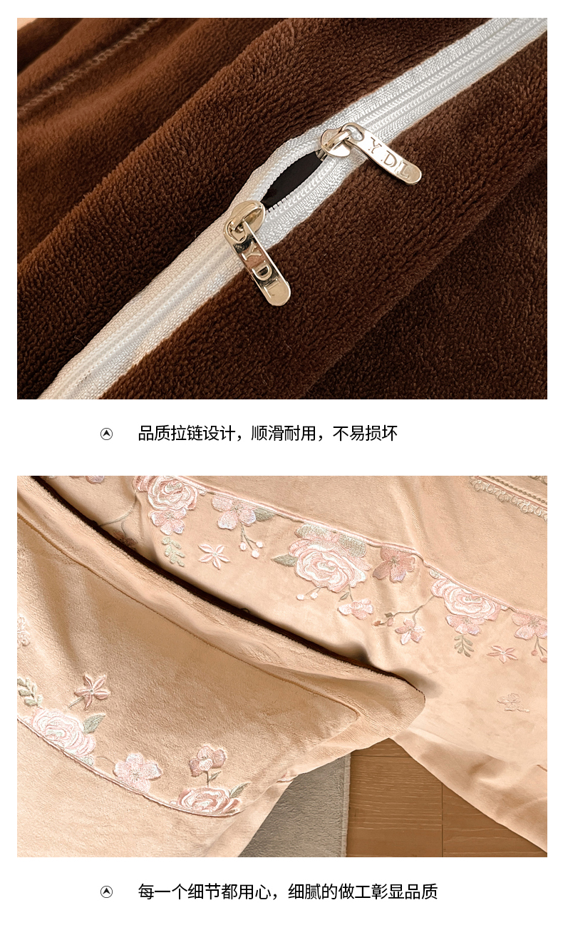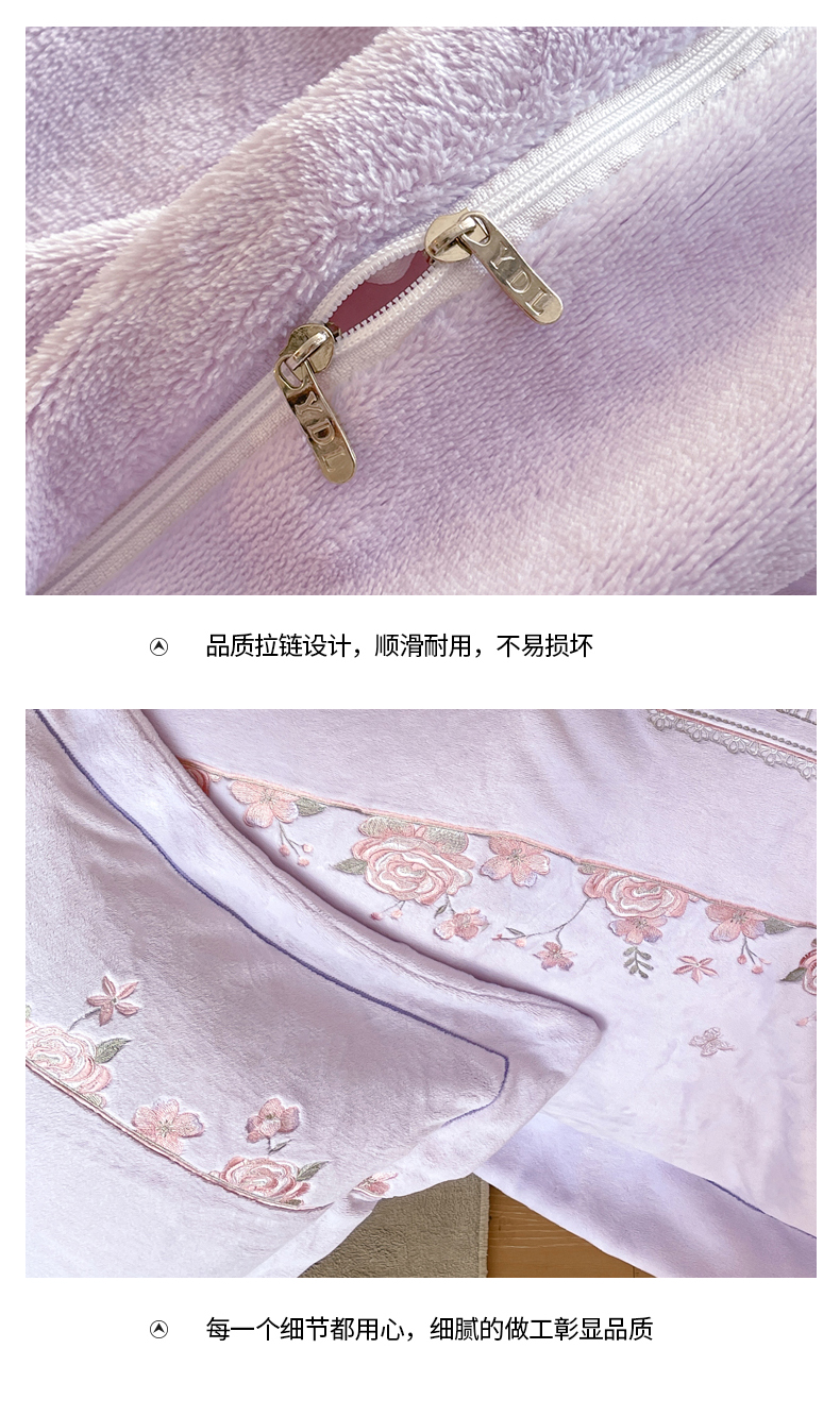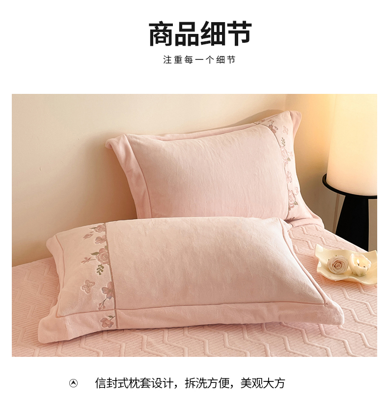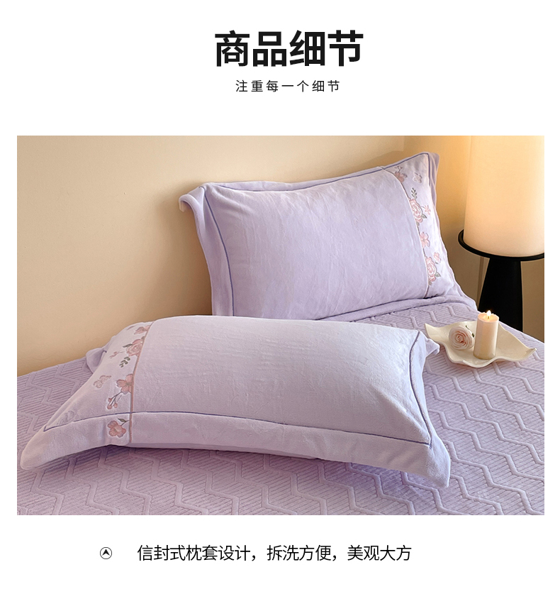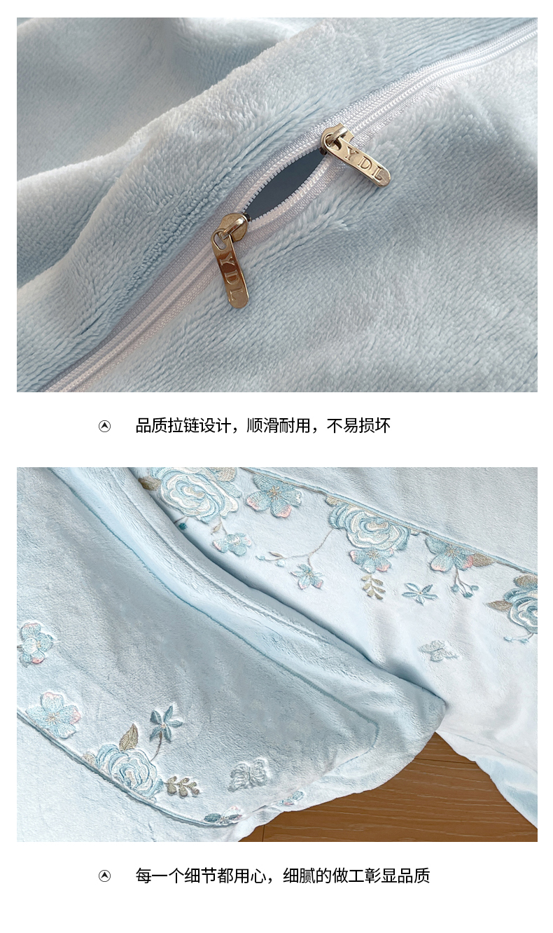 商品名称:(总)控价 2025新款 床盖款240克A类全消光刺绣牛奶绒四件套-花意浓