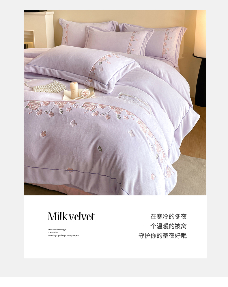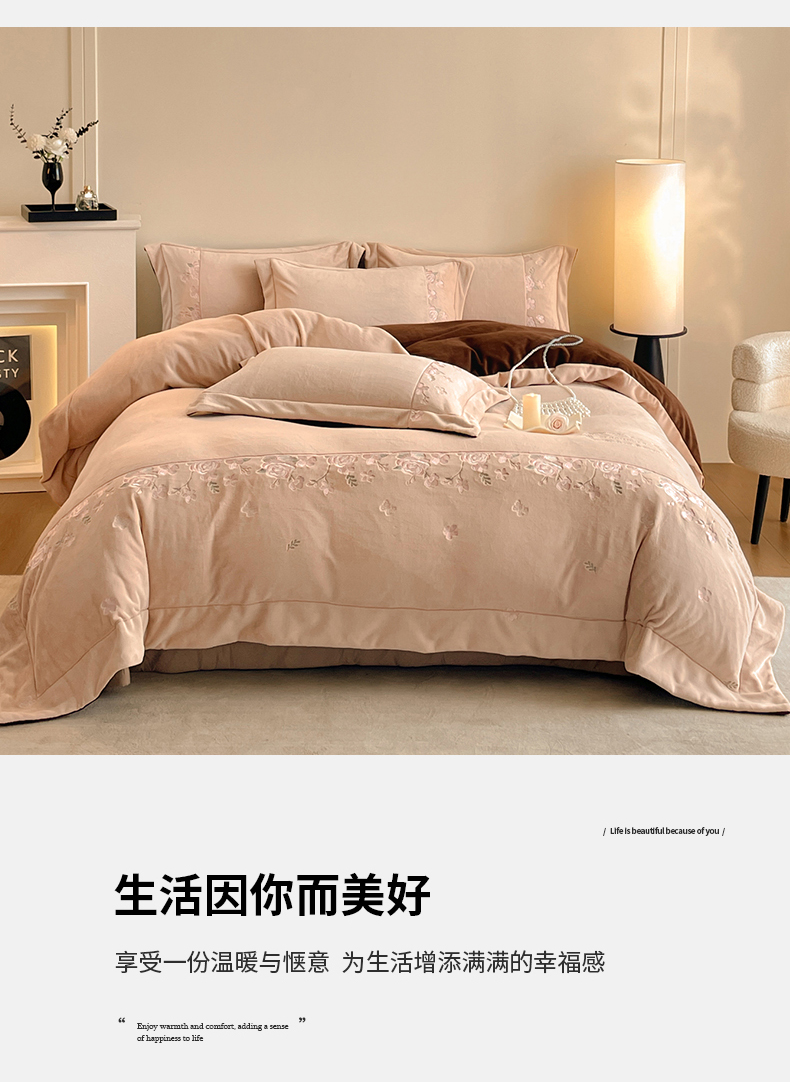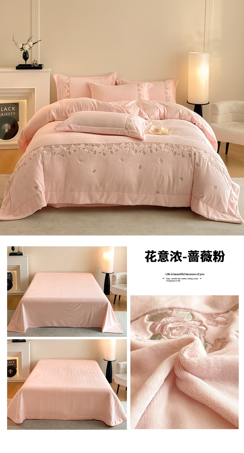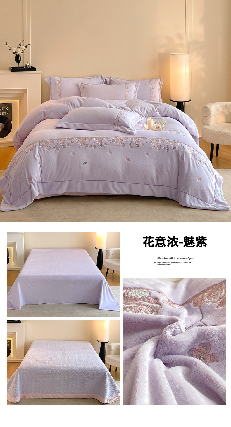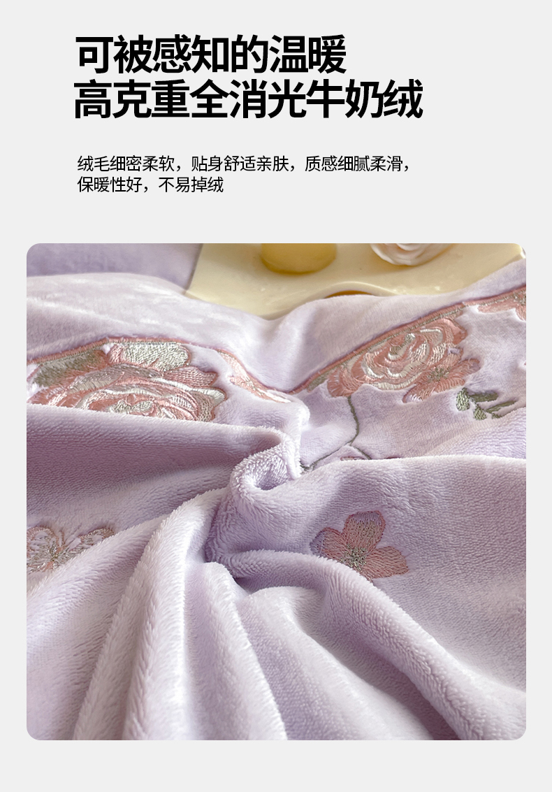 (总)控价 2025新款 床盖款240克A类全消光刺绣牛奶绒四件套-花意浓