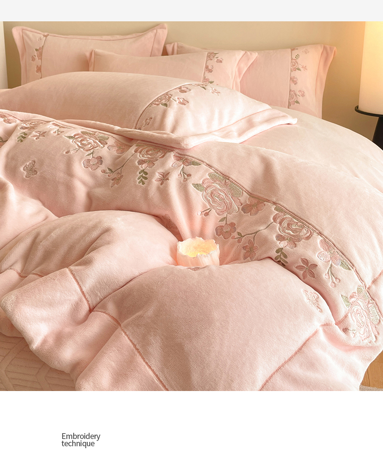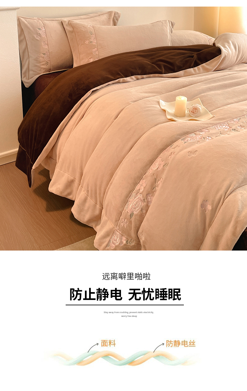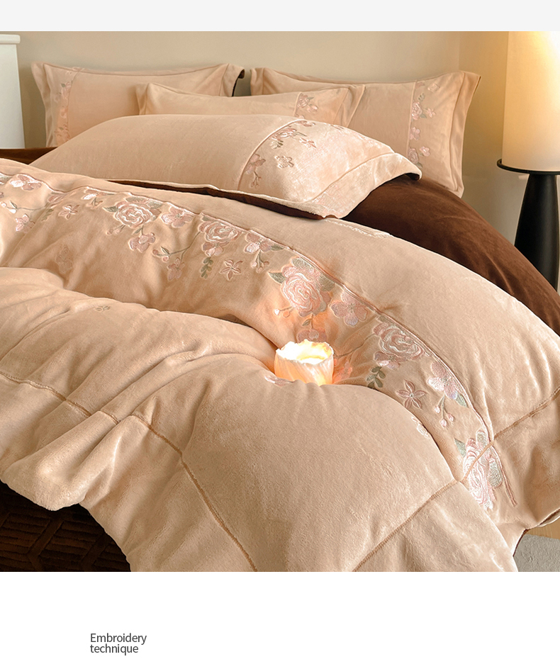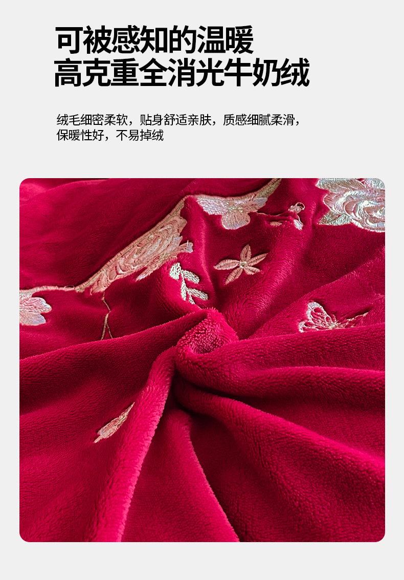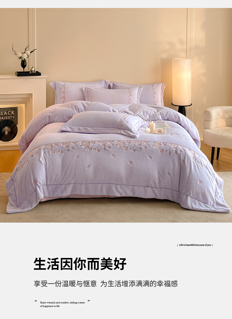 (总)控价 2025新款 床盖款240克A类全消光刺绣牛奶绒四件套-花意浓