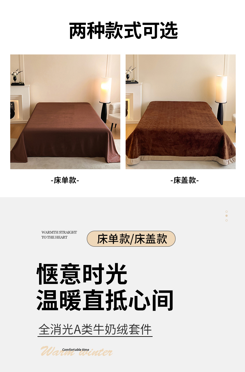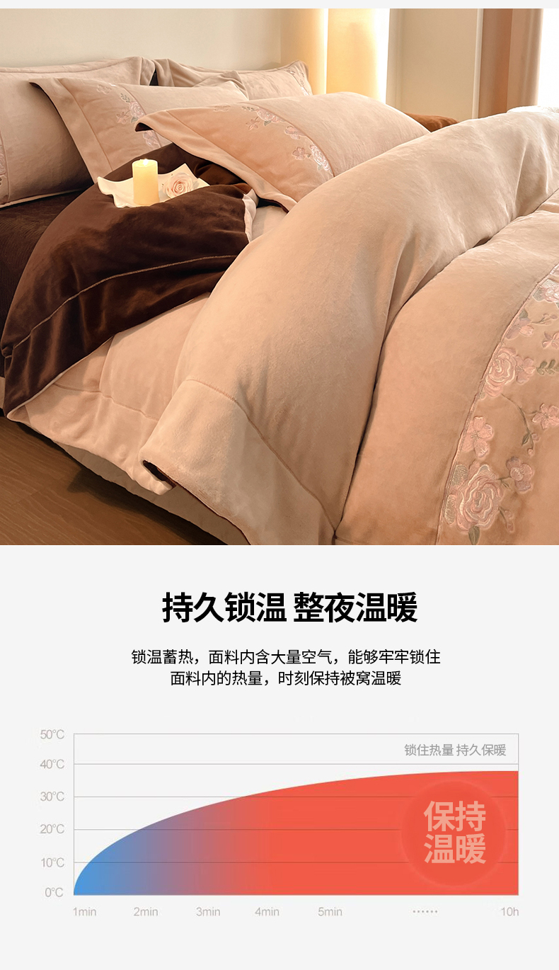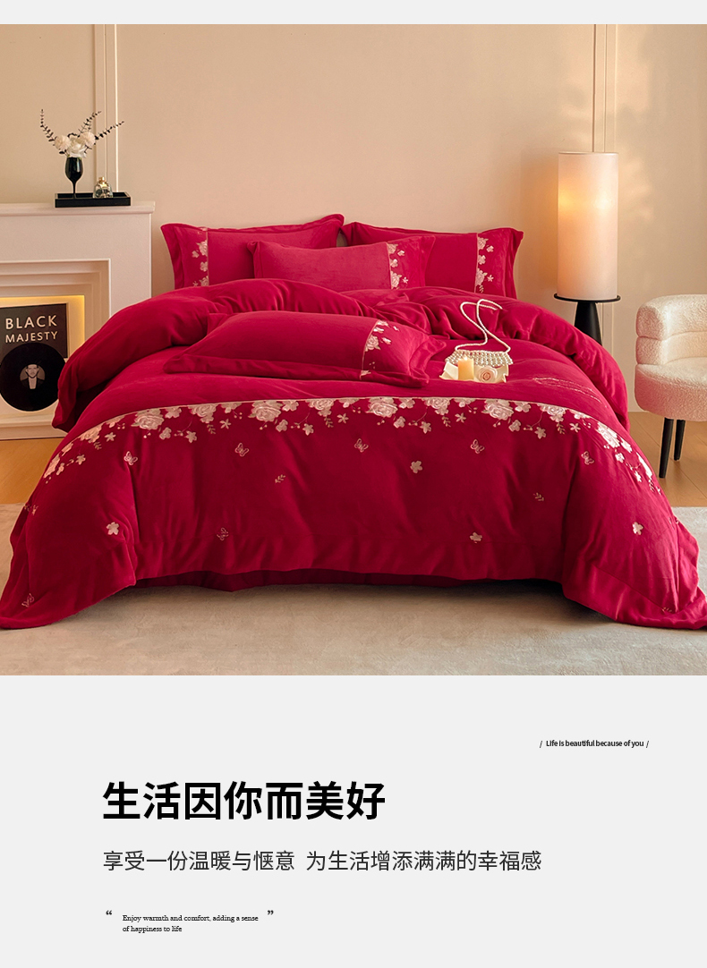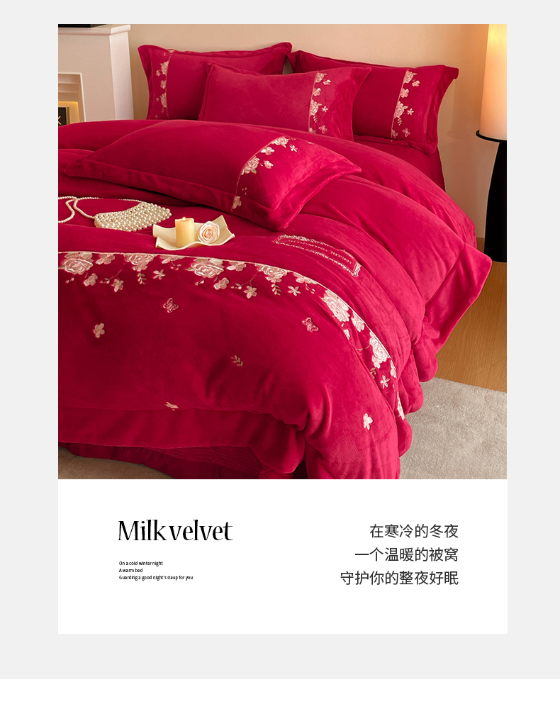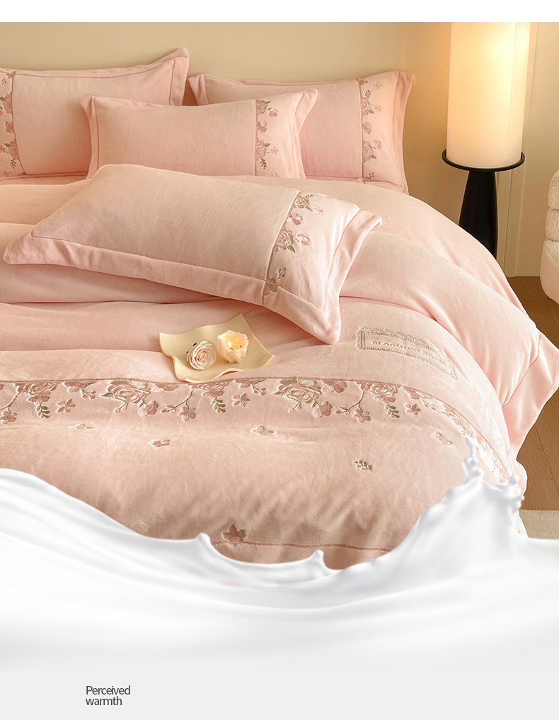 (总)控价 2025新款 床盖款240克A类全消光刺绣牛奶绒四件套-花意浓