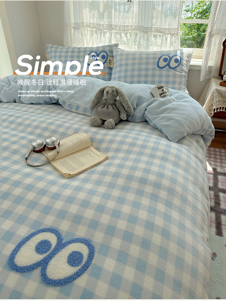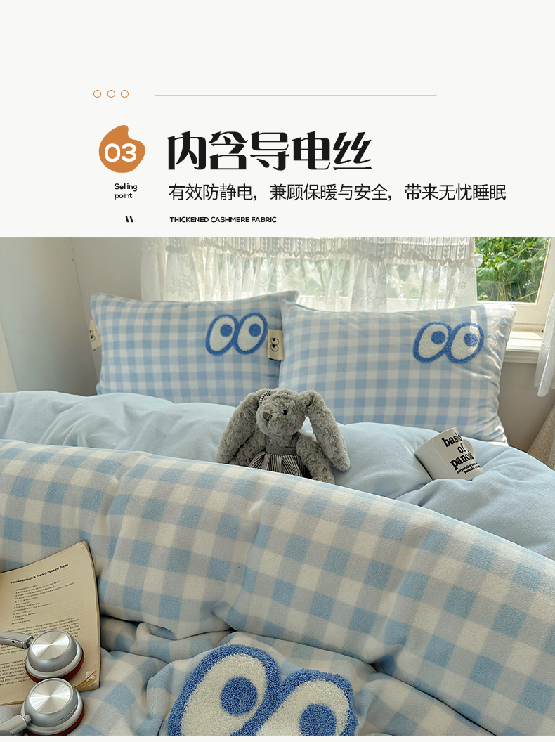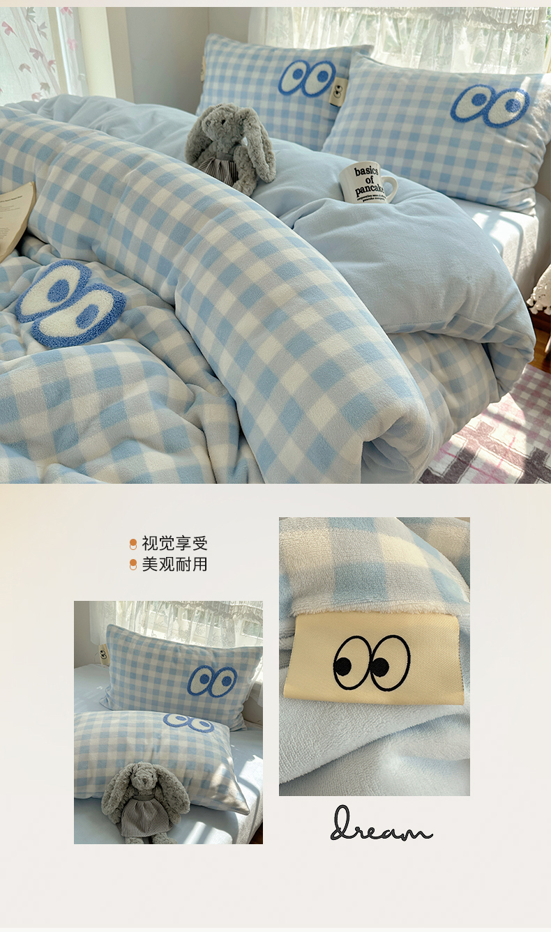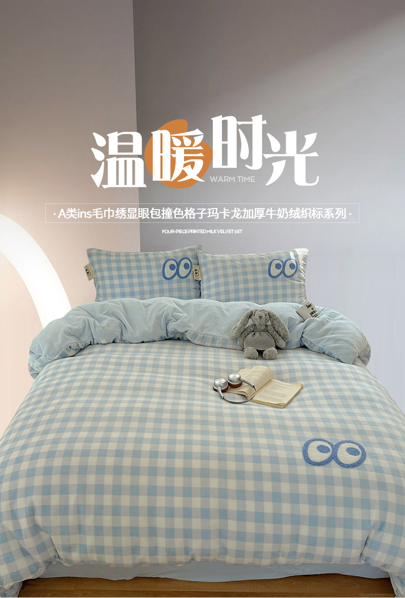 当前位置: 91家纺网 > 商品网购 > 床品套件 > 四件套 > 牛奶绒四件套 > 桃子家居 2025新款A类ins毛巾绣显眼包撞色格子玛卡龙加厚牛奶绒织标四件套-小清新图 绒-显眼包蓝格蓝蓝