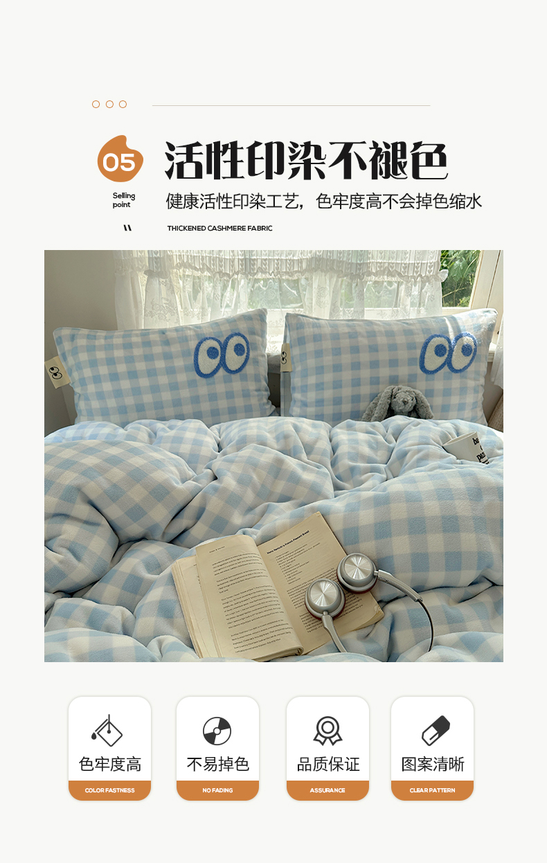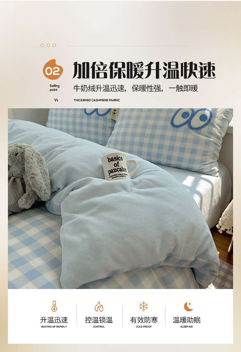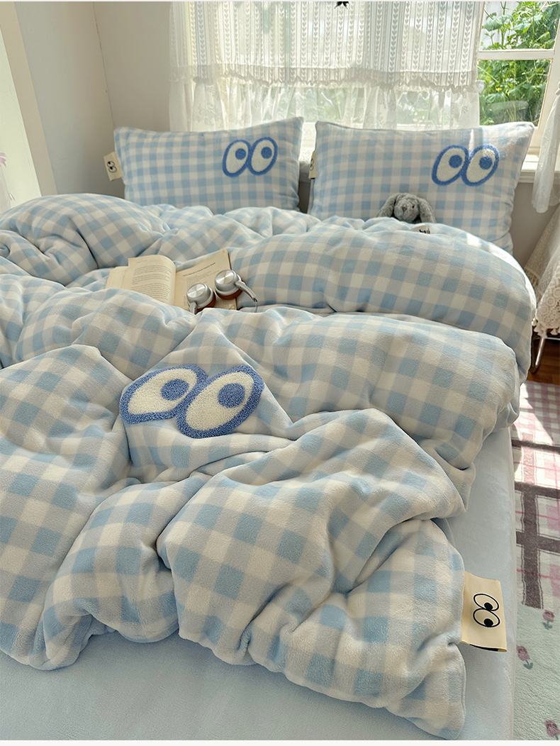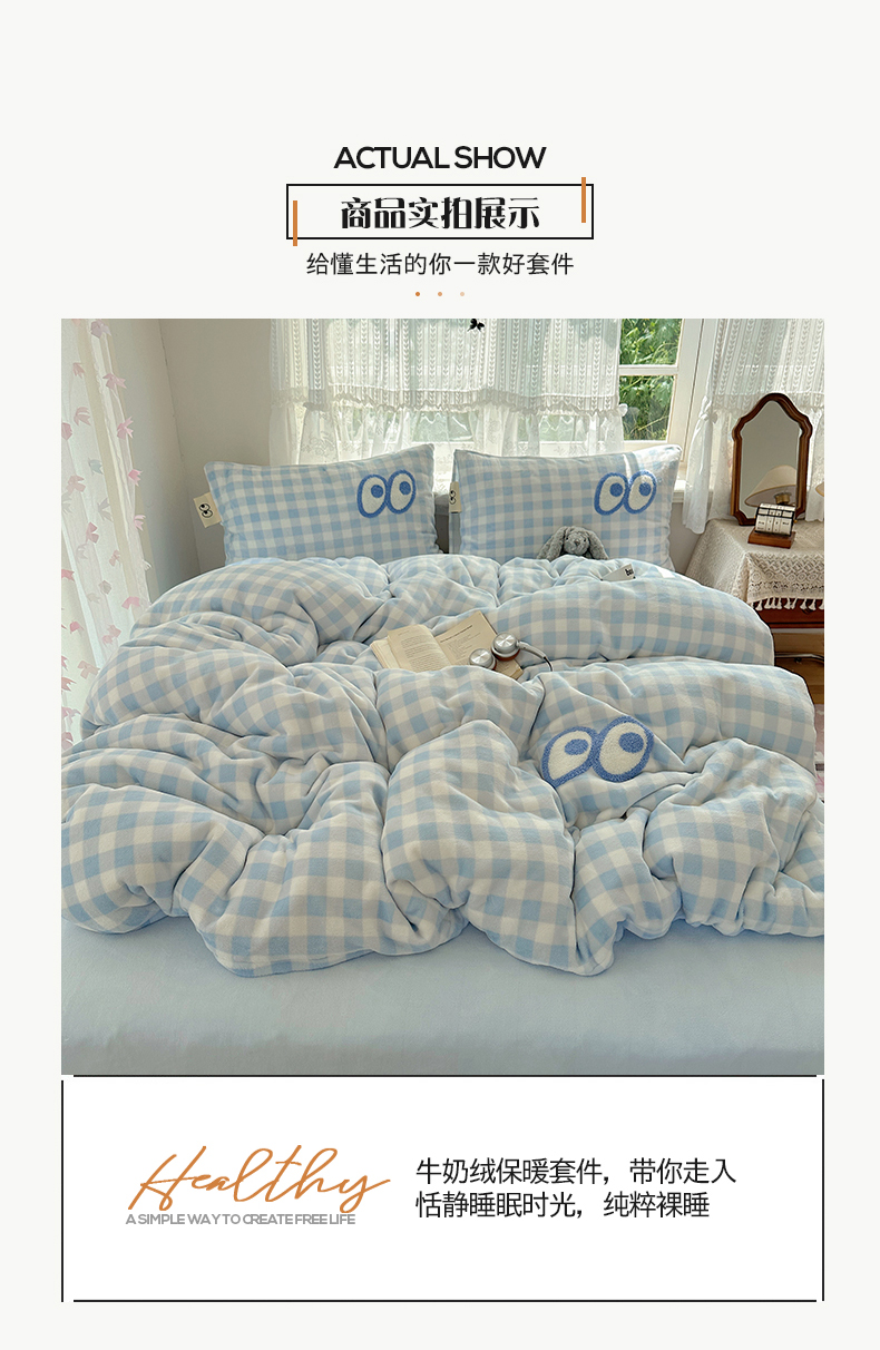 当前位置: 91家纺网 > 商品网购 > 床品套件 > 四件套 > 牛奶绒四件套 > 桃子家居 2025新款A类ins毛巾绣显眼包撞色格子玛卡龙加厚牛奶绒织标四件套-小清新图 绒-显眼包蓝格蓝蓝