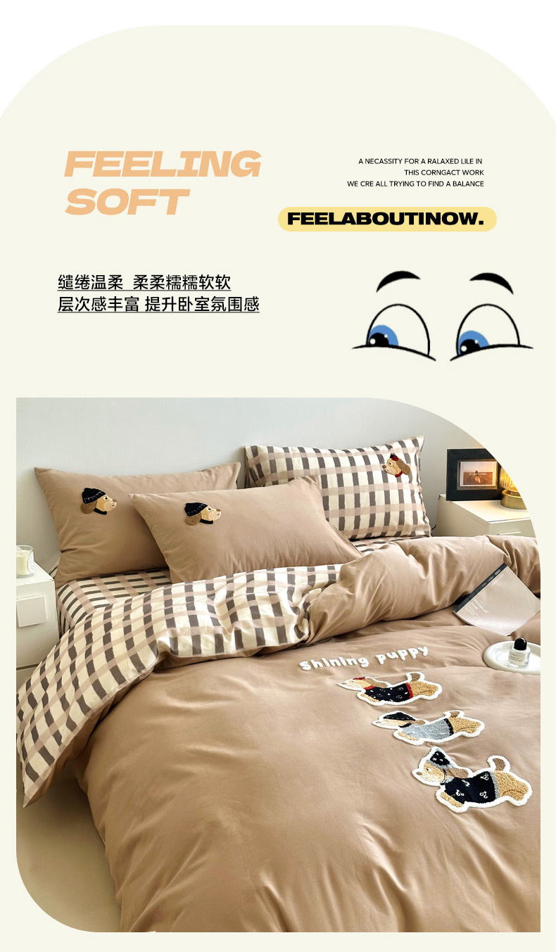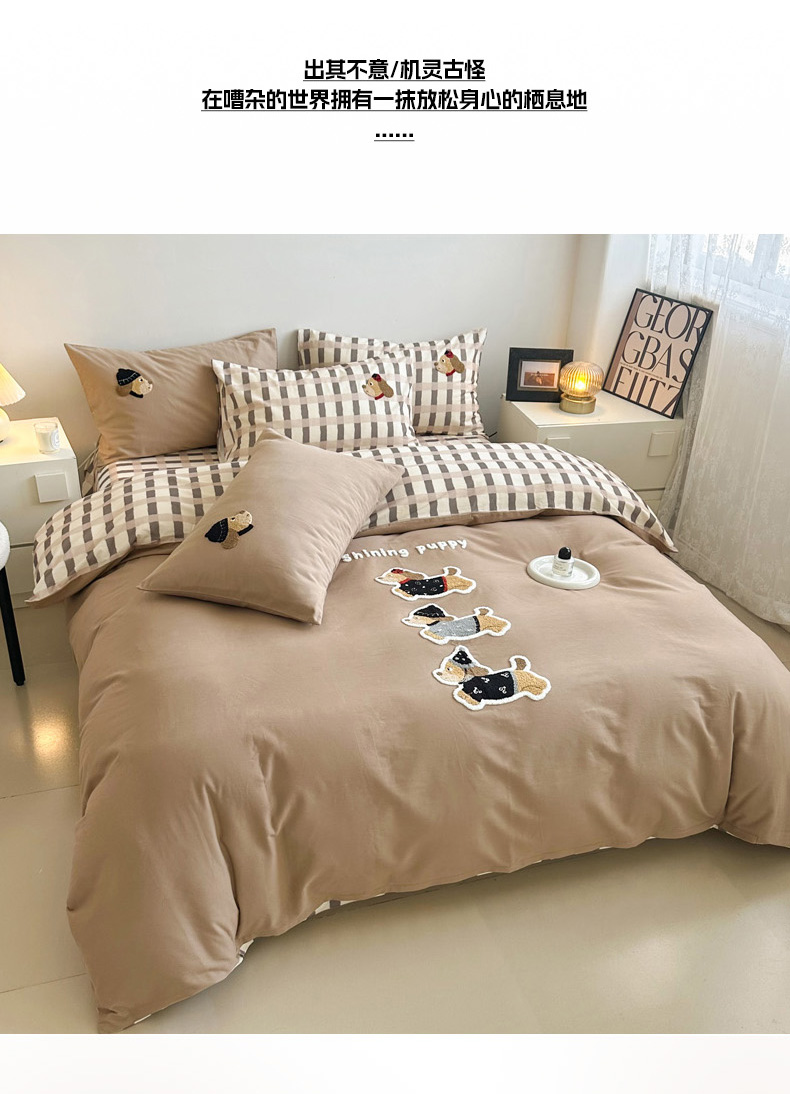 当前位置: 91家纺网 > 商品网购 > 床品套件 > 四件套 > 全棉普通四件套 > 如意朵 2025新款全棉纯棉磨毛绣花四件套-风格一 复古小狗