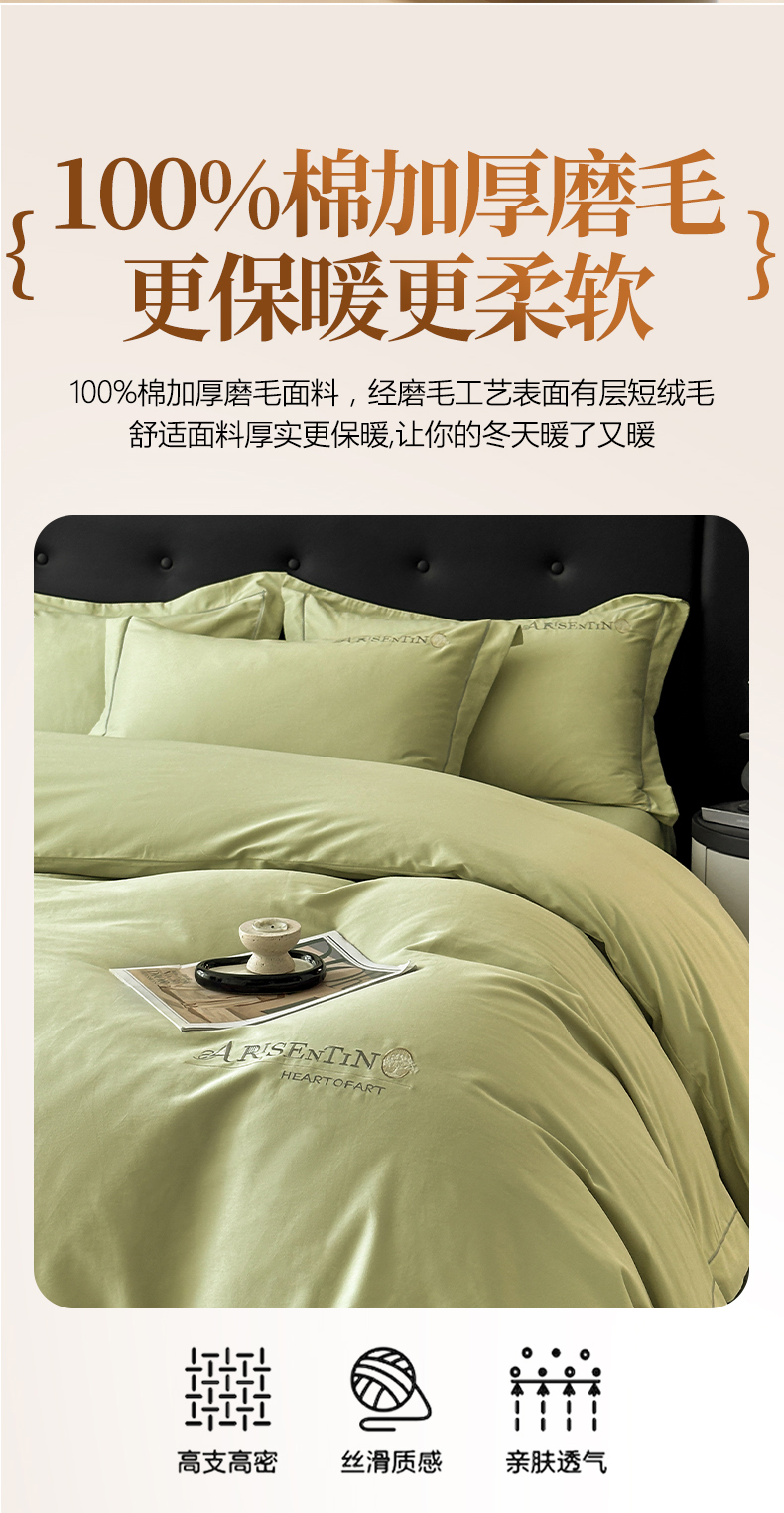 当前位置: 91家纺网 > 商品网购 > 床品套件 > 四件套 > 全棉普通四件套 > 小叮当家纺仓储工厂店 2025新款(买家秀 不断货)A类全棉长绒棉纯棉加厚刺绣磨毛四件套-邂逅 邂逅-流沙绿