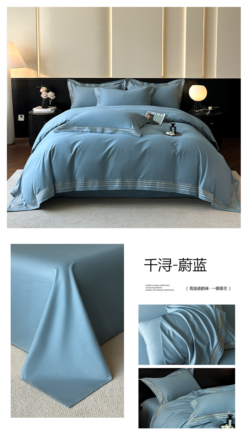 商品名称:(总)小叮当家纺仓储工厂店 2025新款A类(买家秀 不断货)全棉纯棉长绒棉纯棉加厚刺绣磨毛四件套-千浔系列