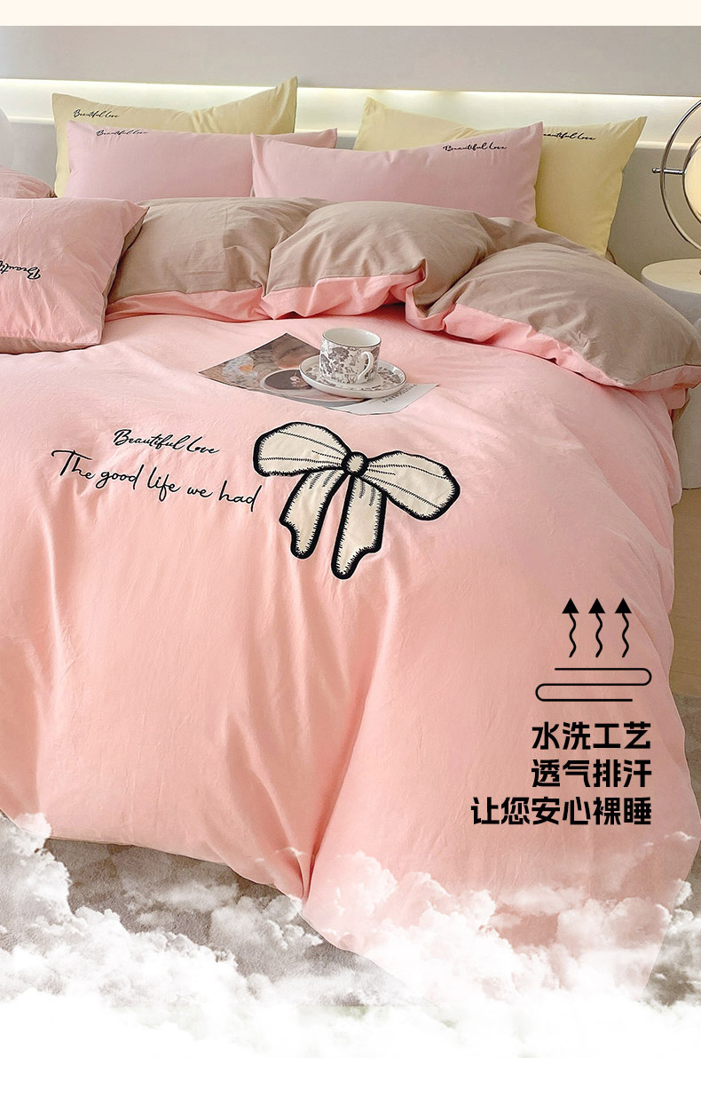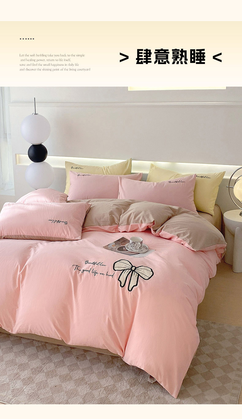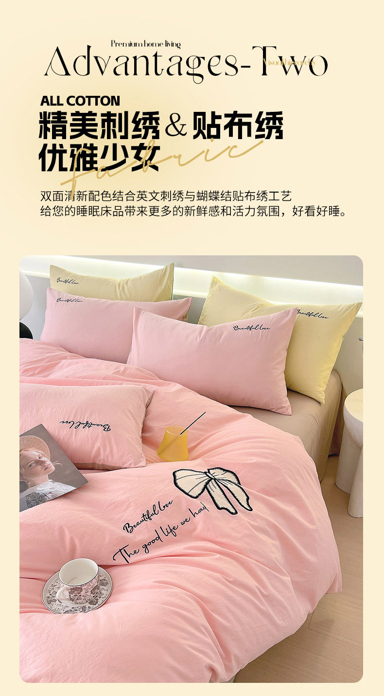 当前位置: 91家纺网 > 商品网购 > 床品套件 > 四件套 > 全棉普通四件套 > 小叮当家纺仓储工厂店 2025新款(买家秀不断货)A类母婴及全棉纯棉水洗棉刺绣贴布绣四件套--初恋系列 粉玉+卡其