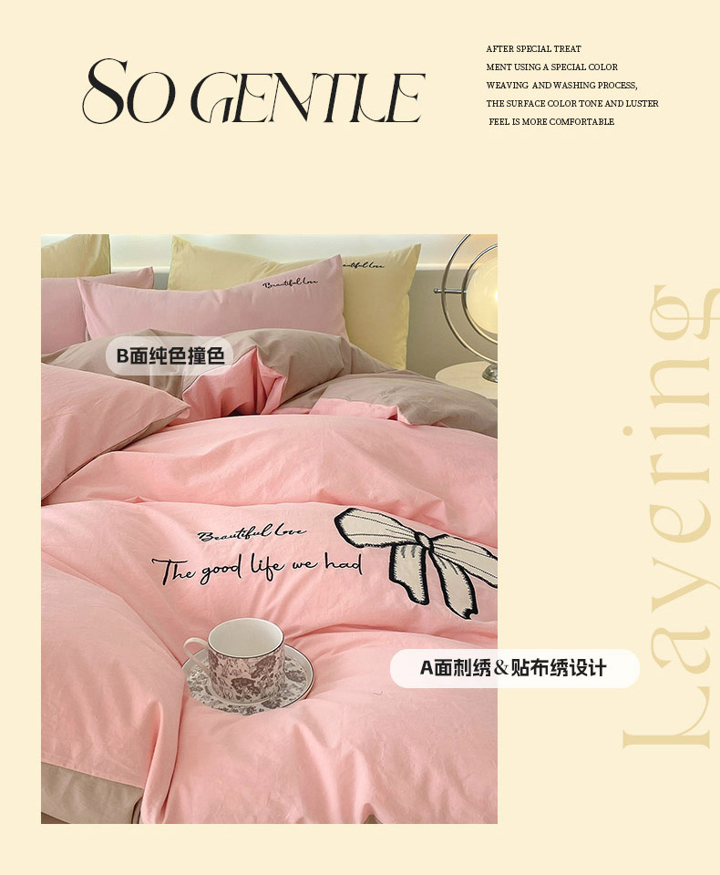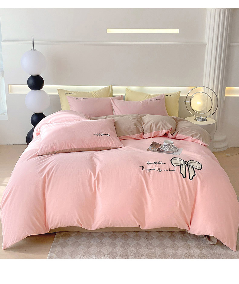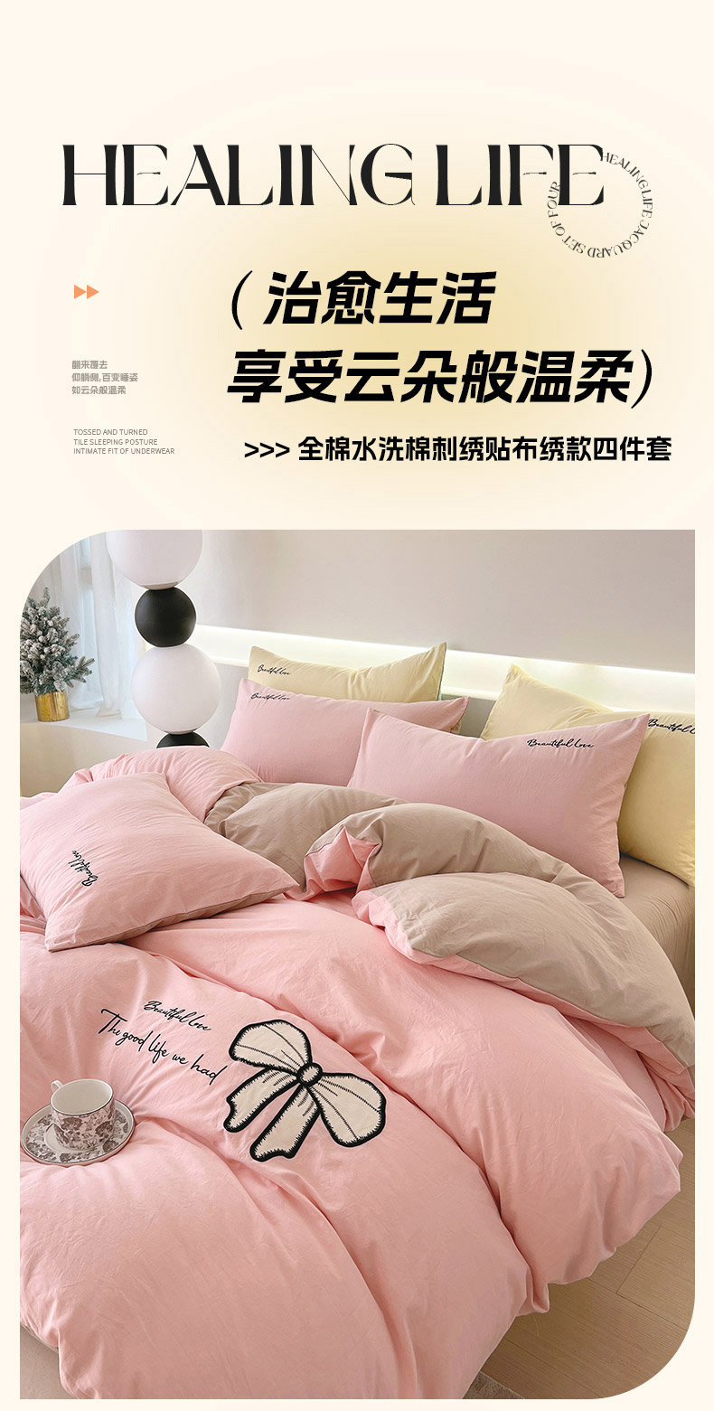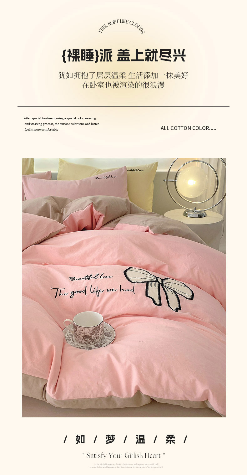 当前位置: 91家纺网 > 商品网购 > 床品套件 > 四件套 > 全棉普通四件套 > 小叮当家纺仓储工厂店 2025新款(买家秀不断货)A类母婴及全棉纯棉水洗棉刺绣贴布绣四件套--初恋系列 粉玉+卡其