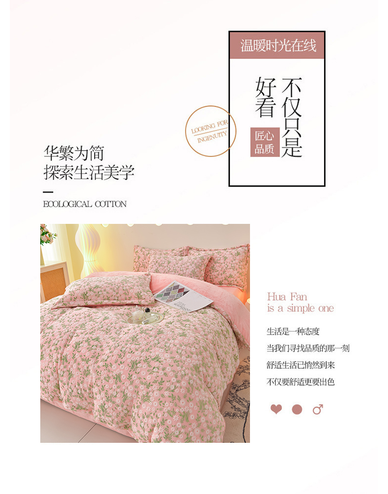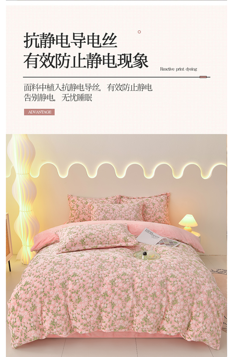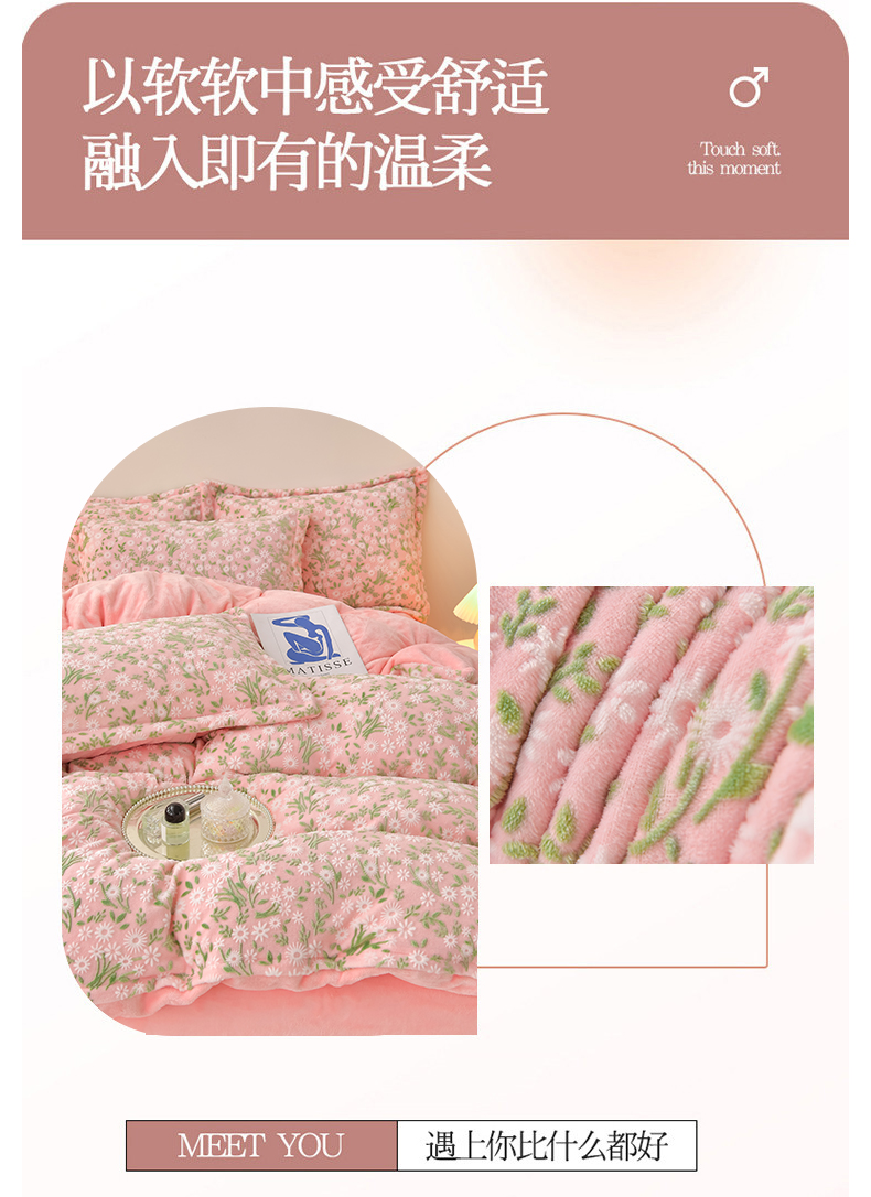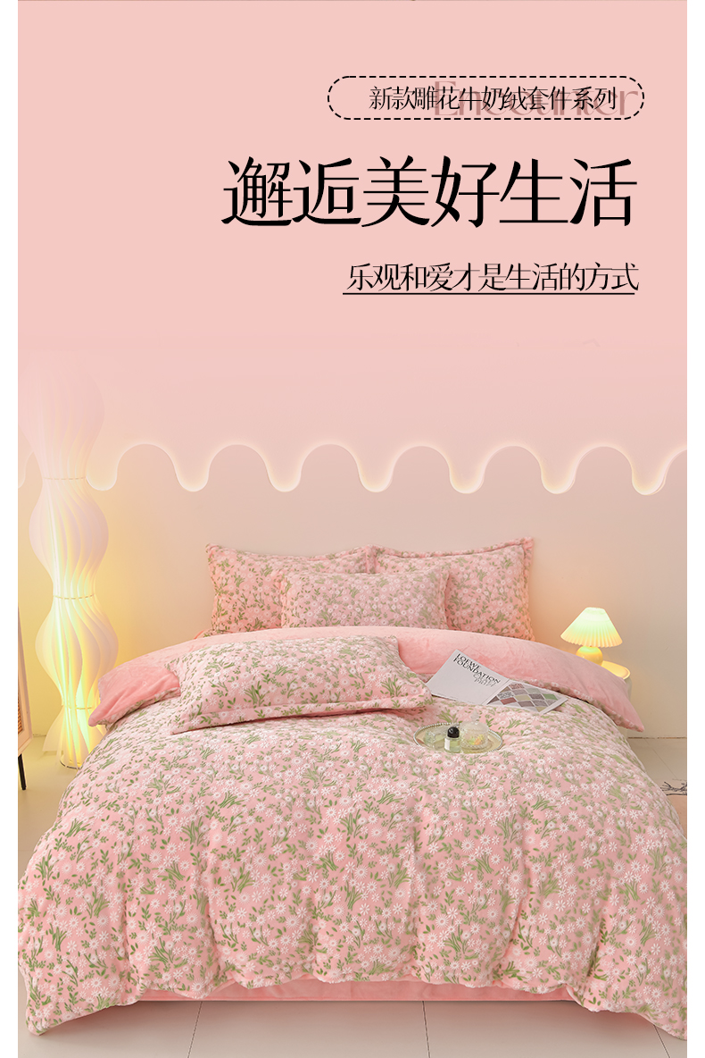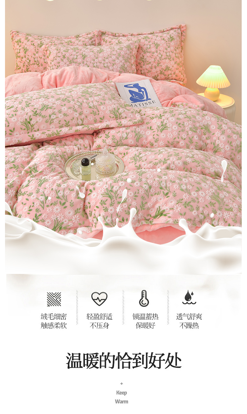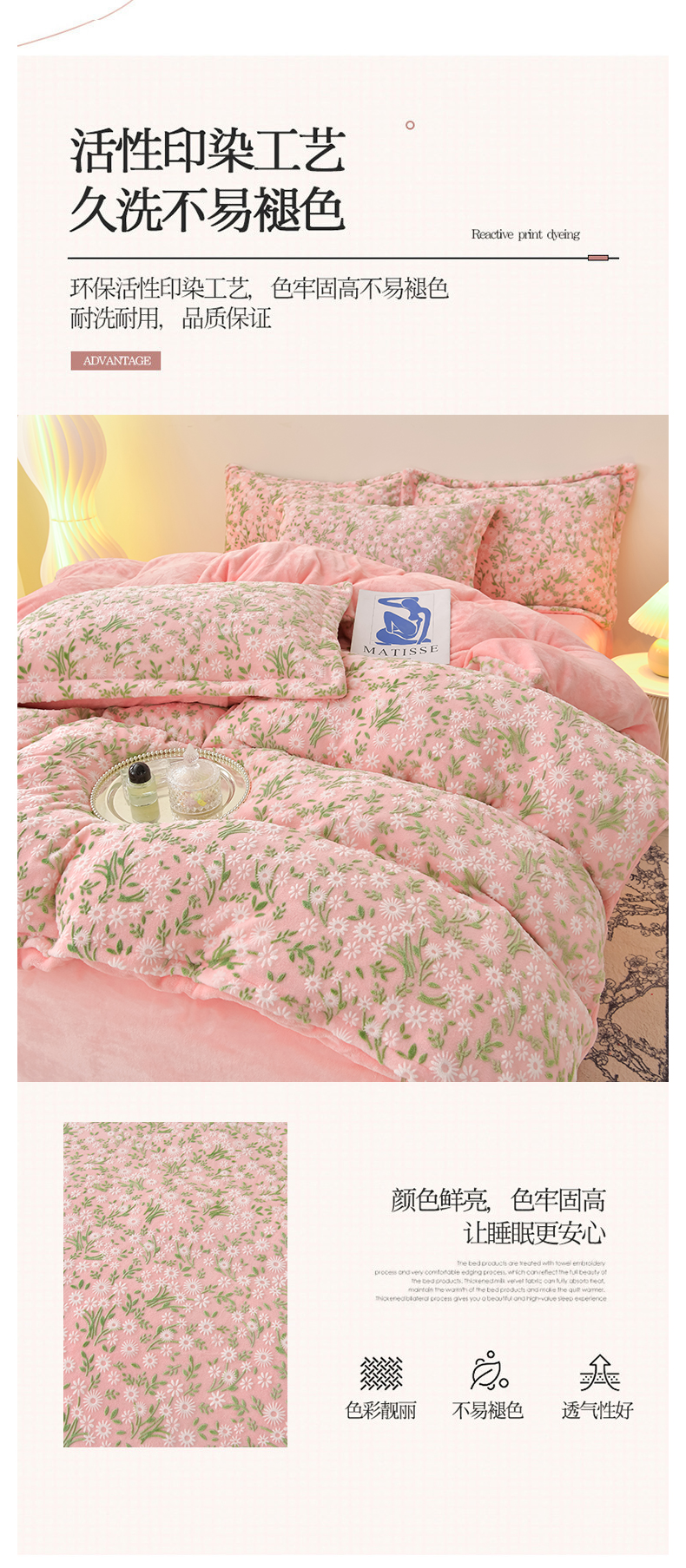 商品名称:畅畅家纺 2025新款亲肤舒适冬季保暖8斤重牛奶绒6D雕花绒床单四件套 小雏菊-粉