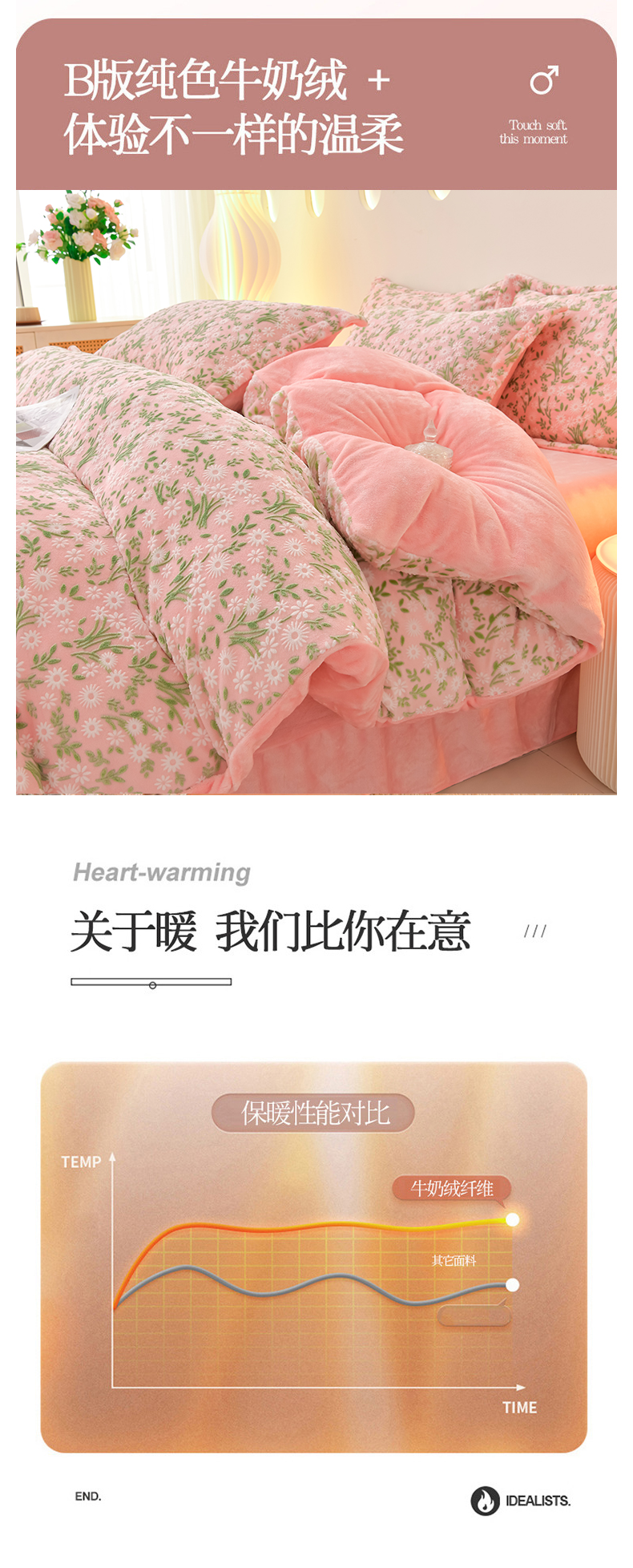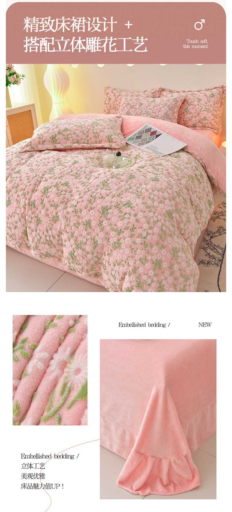 畅畅家纺 2025新款亲肤舒适冬季保暖8斤重牛奶绒6D雕花绒床单四件套 小雏菊-粉