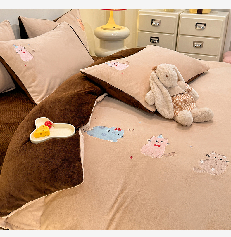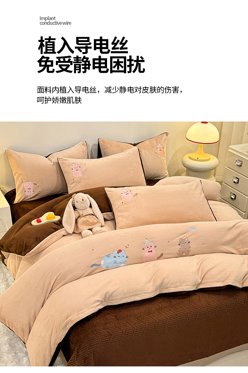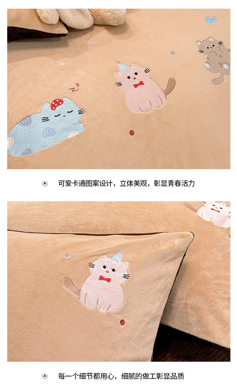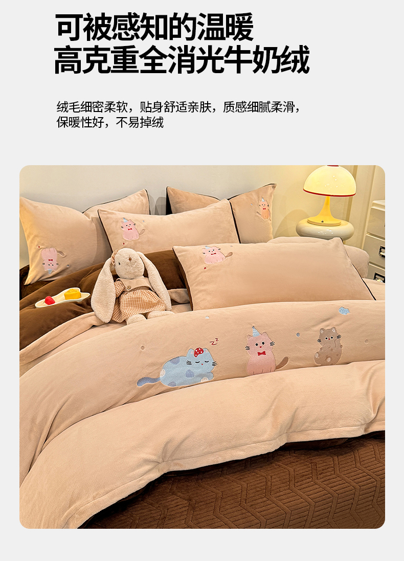 当前位置: 91家纺网 > 商品网购 > 床品套件 > 四件套 > 牛奶绒四件套 > 新方向 2025新款全消光A类刺绣牛奶绒四件套-可爱猫 可爱猫-香槟咖