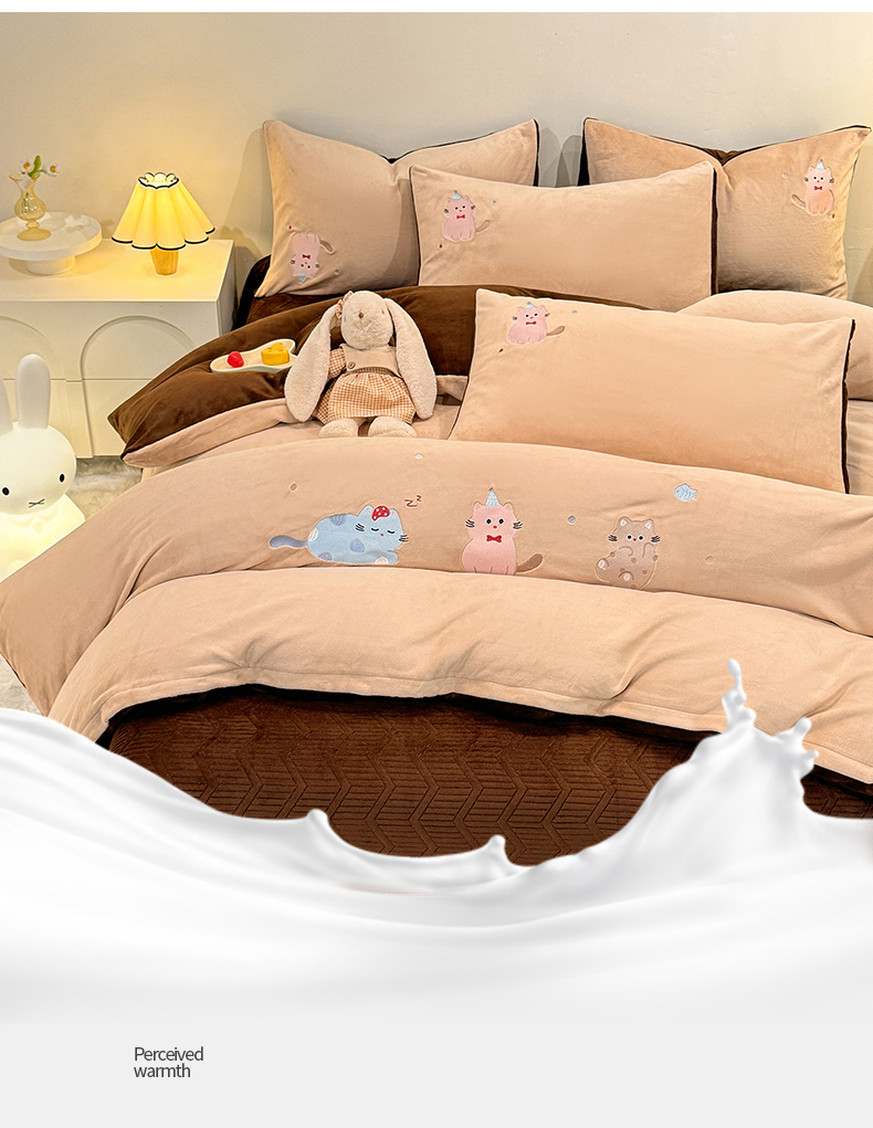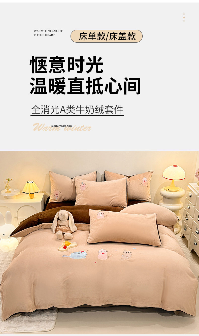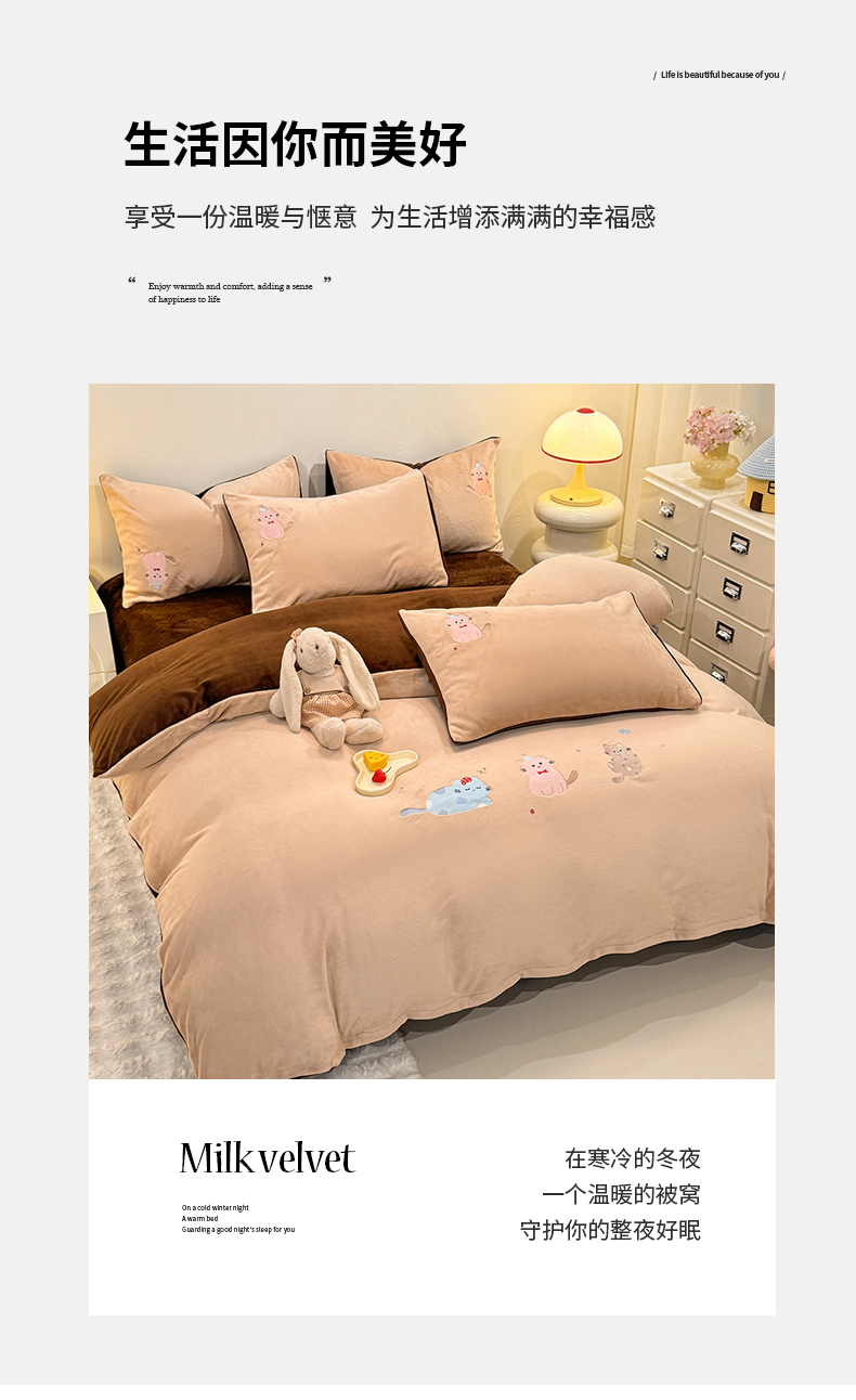 当前位置: 91家纺网 > 商品网购 > 床品套件 > 四件套 > 牛奶绒四件套 > 新方向 2025新款全消光A类刺绣牛奶绒四件套-可爱猫 可爱猫-香槟咖