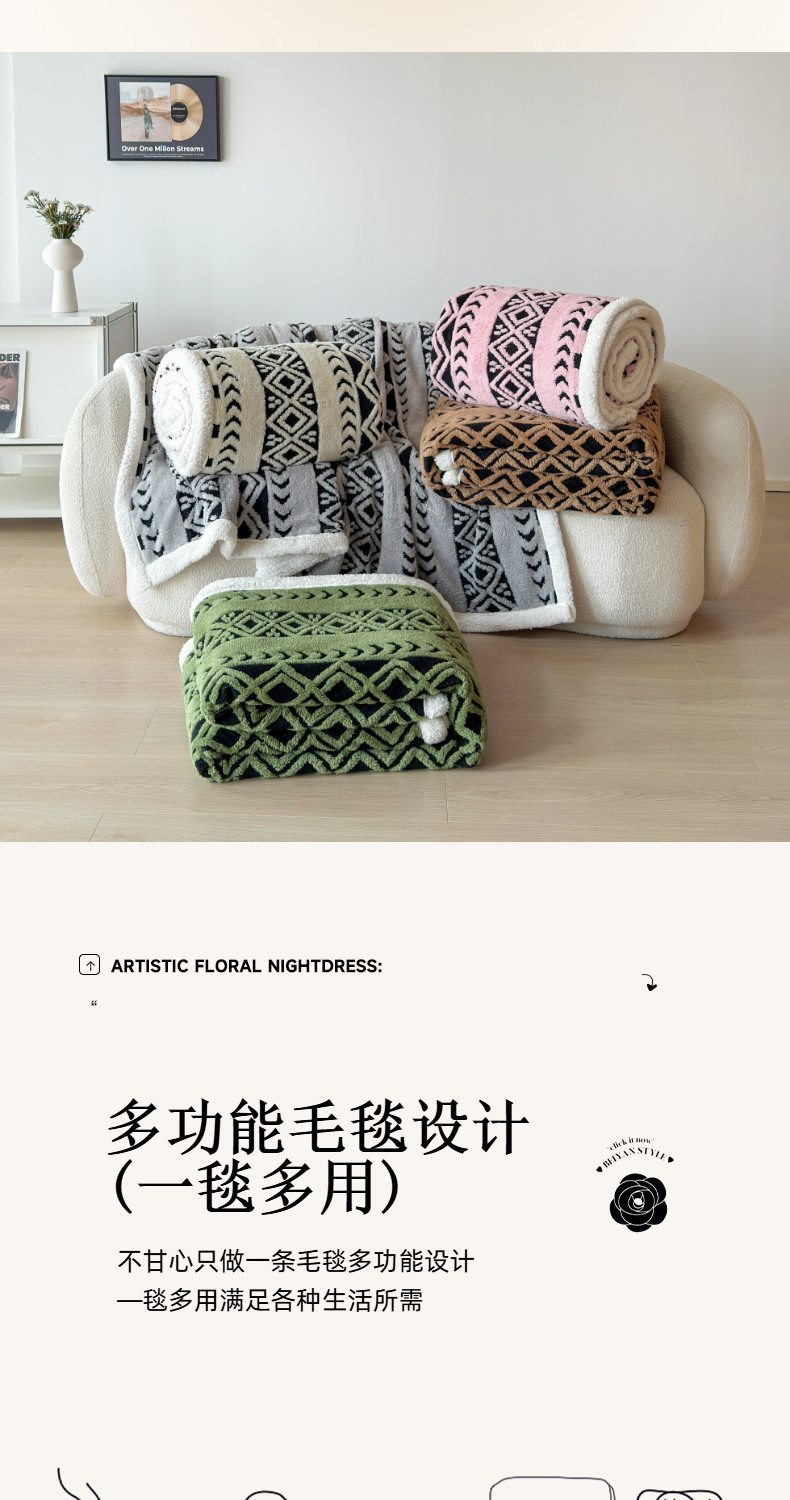 (总)卡琪曼 2025新款阳离子提花羊羔绒毛毯盖毯毯子,军绿,粉色,米白,浅灰,浅紫色,深灰,驼色,雾蓝