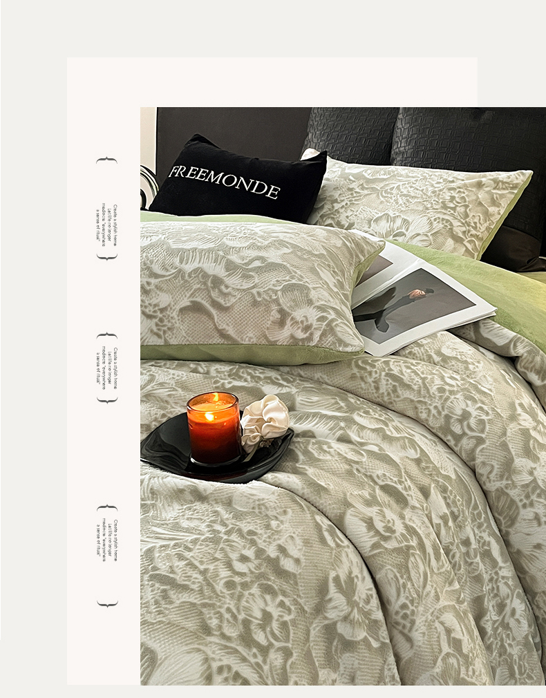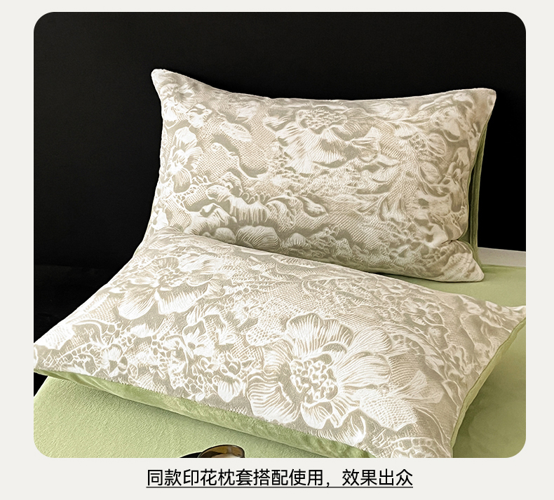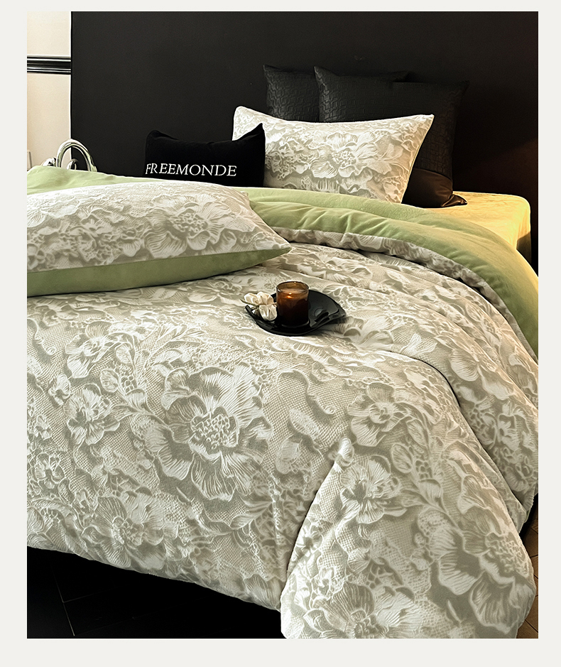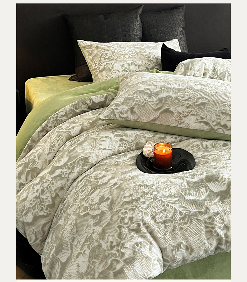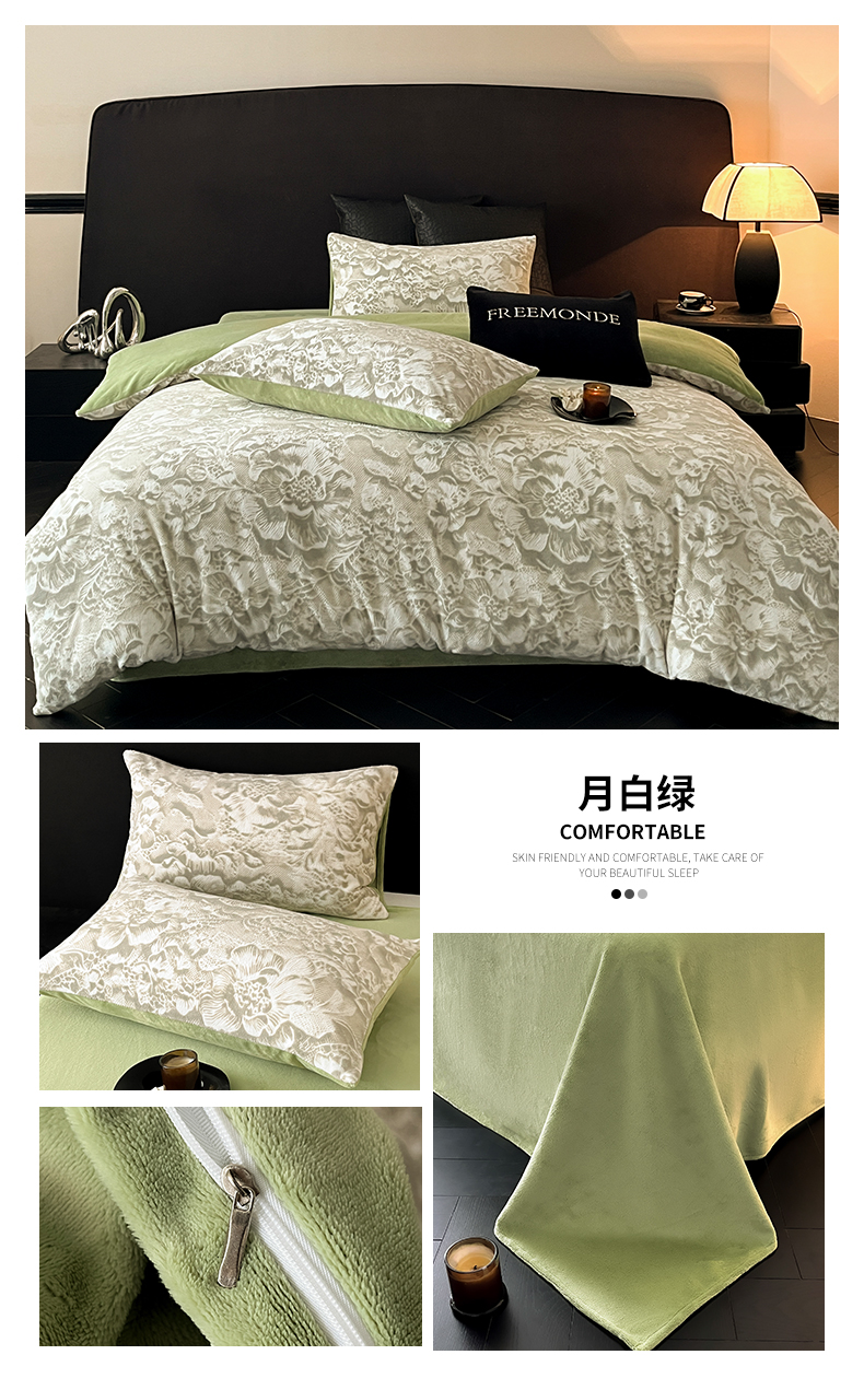 商品名称:梦幻之城 2025新款雕花牛奶绒系列四件套-丽娜 丽娜-月白绿