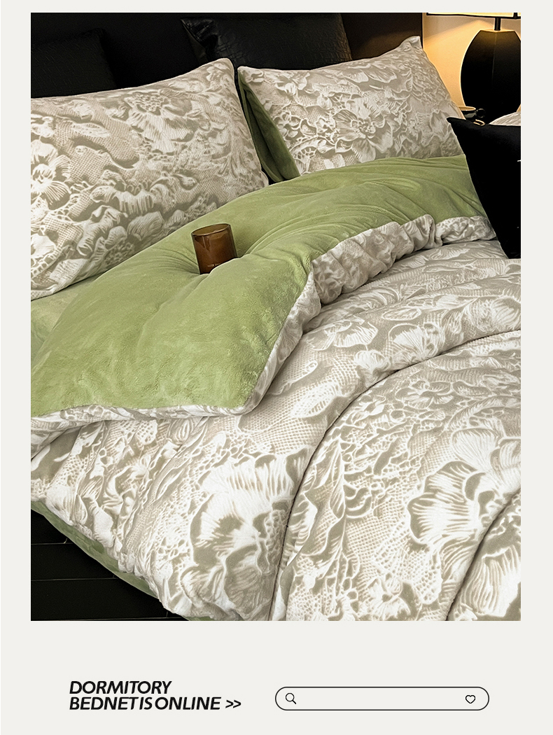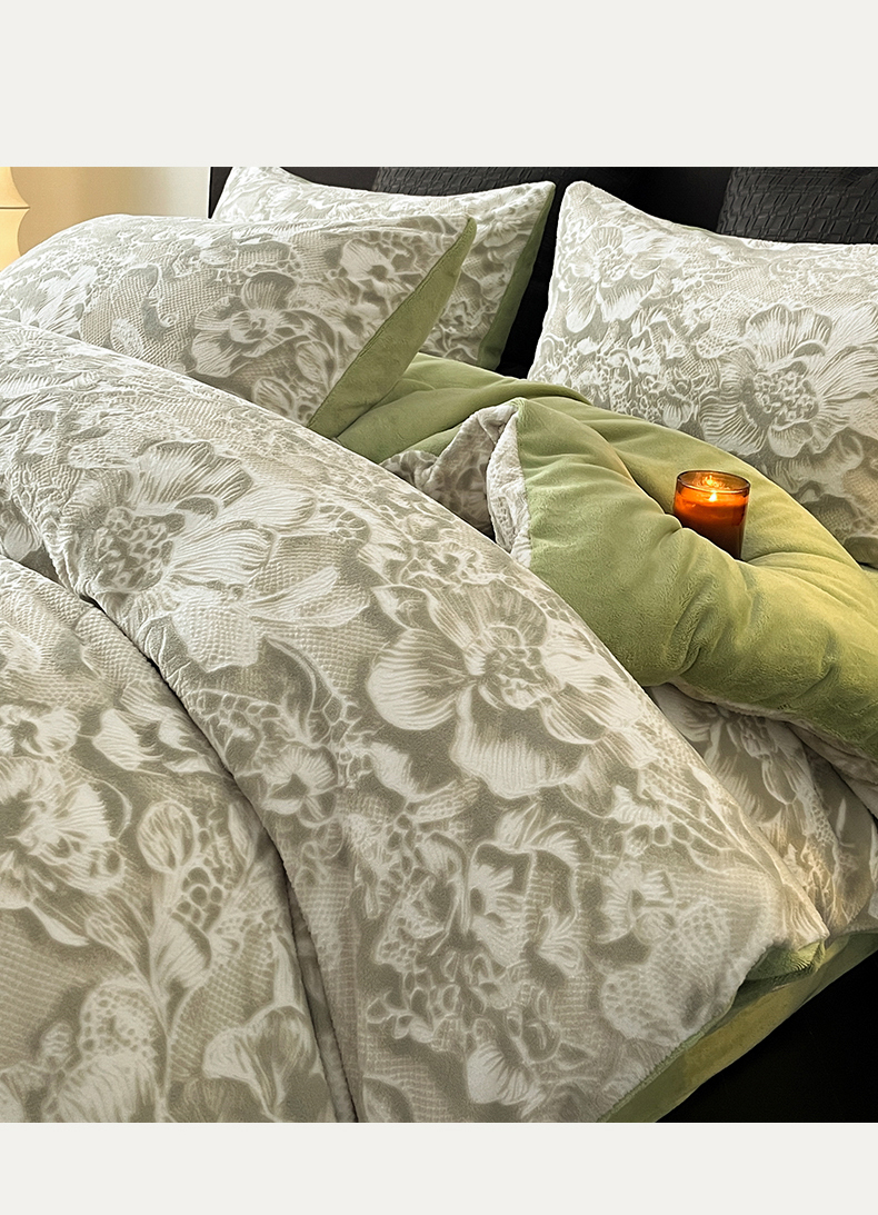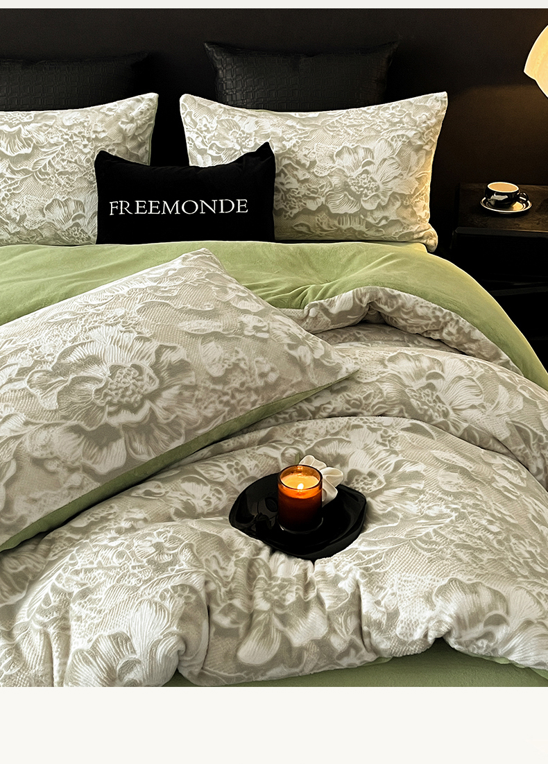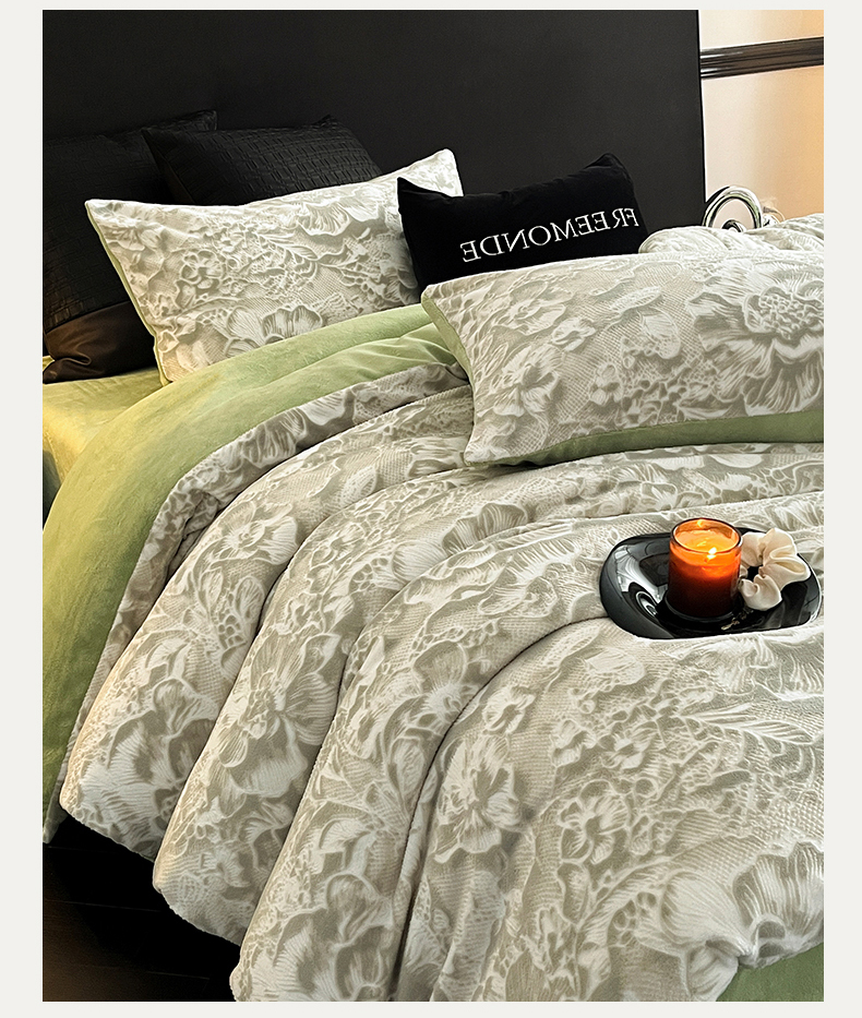 梦幻之城 2025新款雕花牛奶绒系列四件套-丽娜 丽娜-月白绿