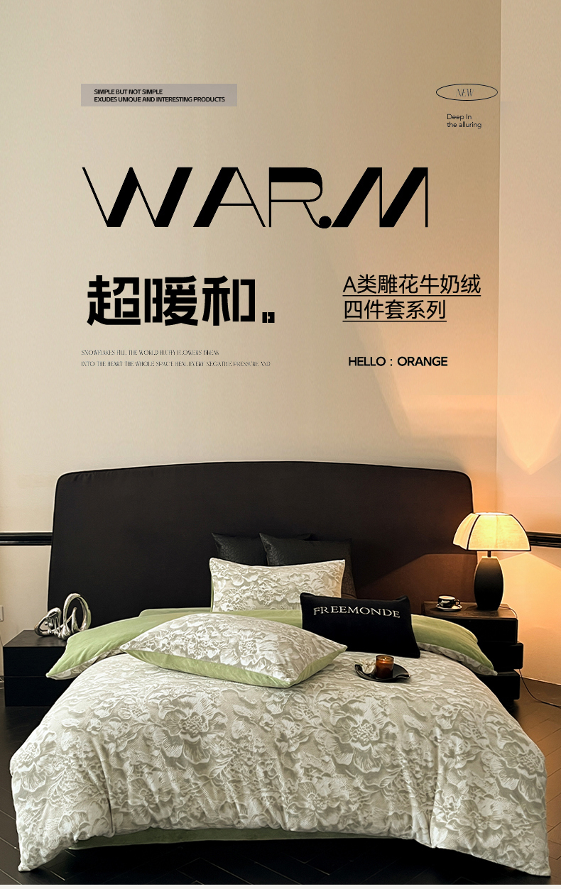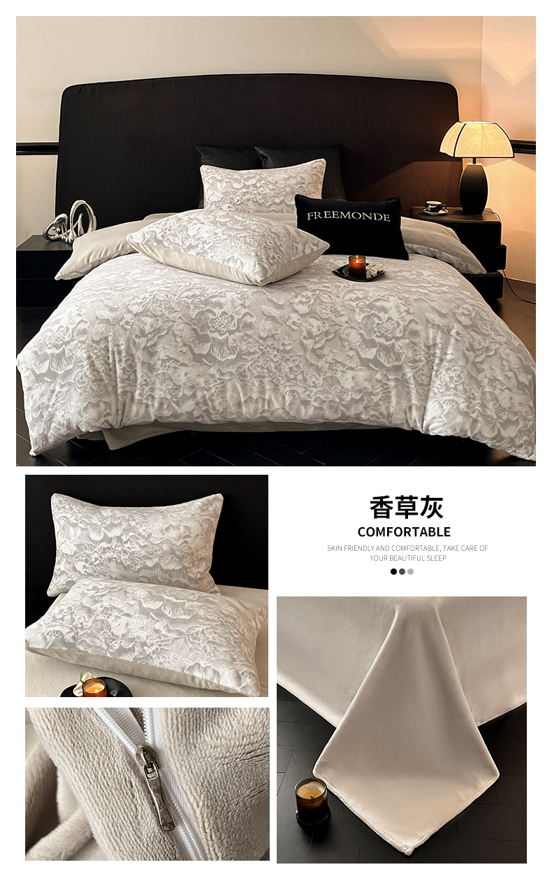 (总)梦幻之城 2025新款雕花牛奶绒系列四件套-丽娜,丽娜-橙意粉,丽娜-香槟色,丽娜-香草灰,丽娜-月白绿
