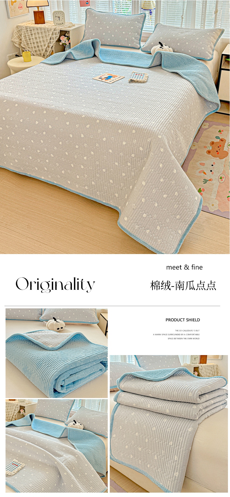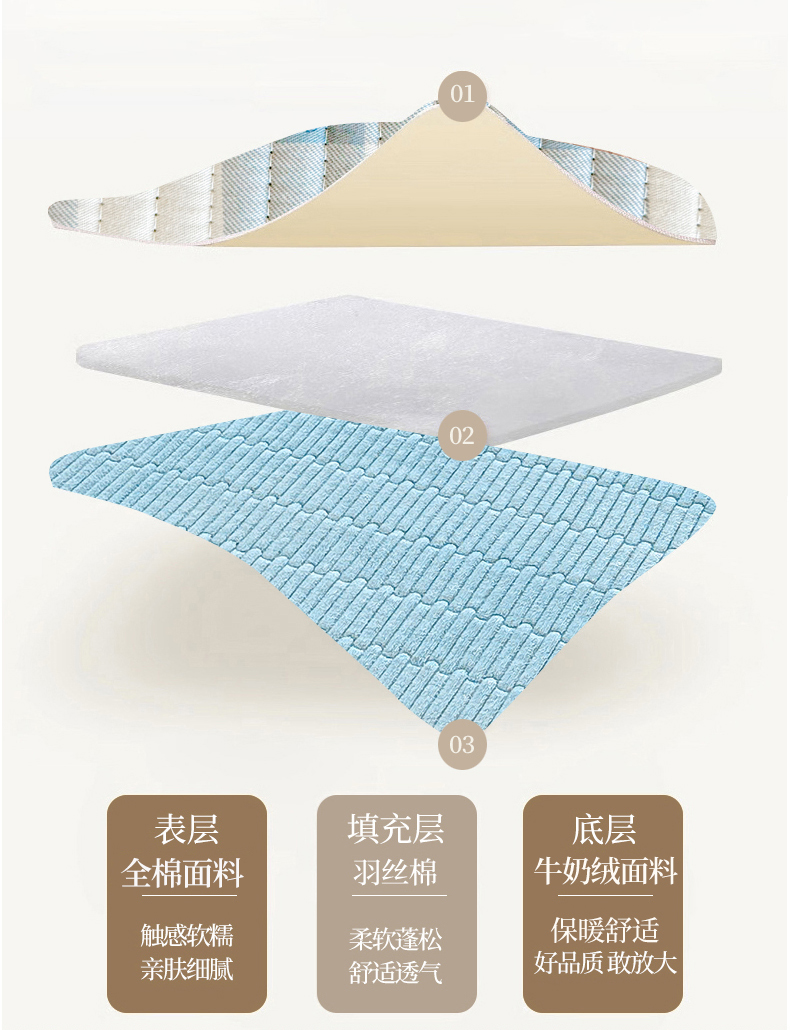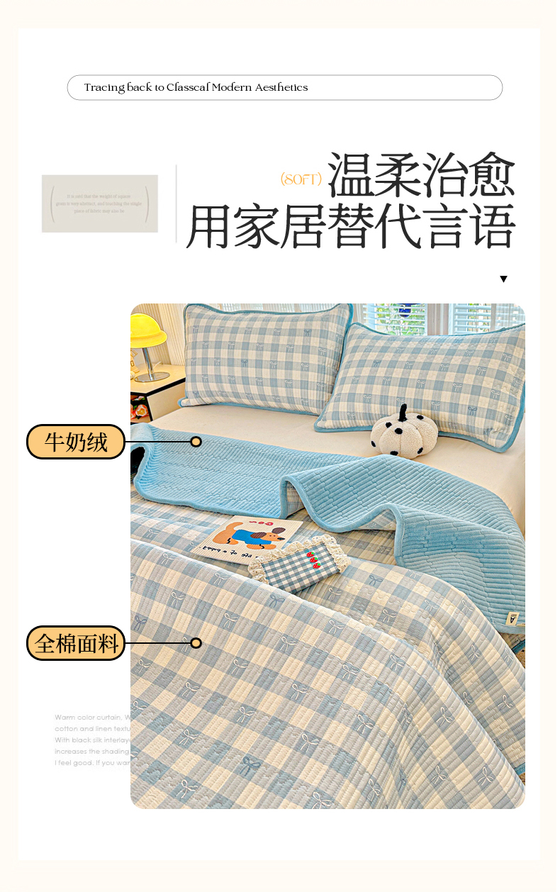 • 91家纺网 家纺一手货源 找家纺 恒尚居 2025新款全棉牛奶绒床盖四季可用纯棉夹棉床单床褥垫三件套-秋冬款系列三 青春兰【A纯棉-B牛奶绒】