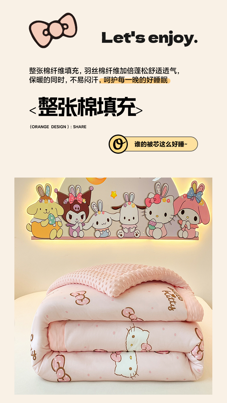 (总)花满路 2024新款儿童三丽鸥系列秋冬豆豆被冬被春秋被被子被芯,糖果大桂狗,库洛米,kitty公主,点点玉桂狗,卡帕狗伙伴,可爱库洛米,酷仔卡帕狗,莓莓美乐蒂,泡泡大眼蛙,甜筒美乐蒂,甜心KT,温暖布丁狗,樱桃大耳狗,元气库洛米,kt猫,玉桂狗