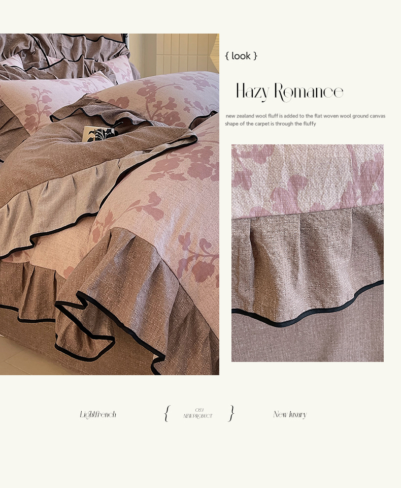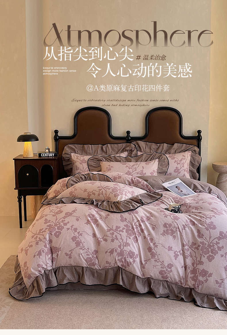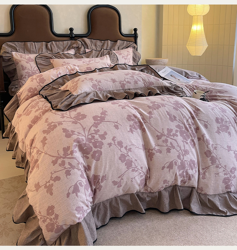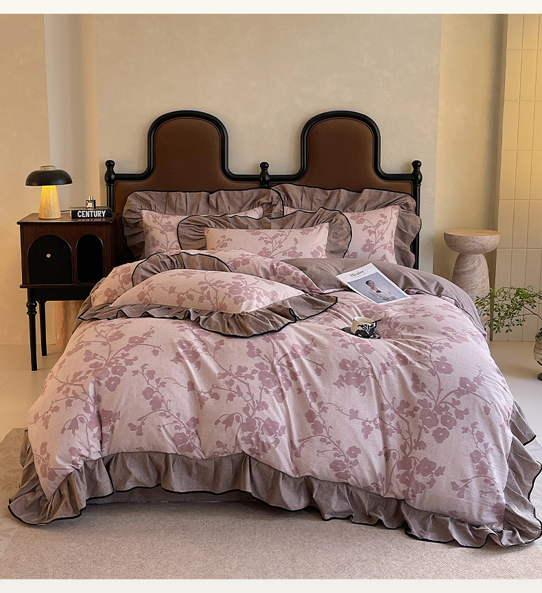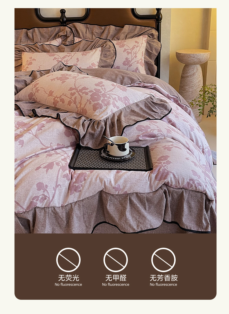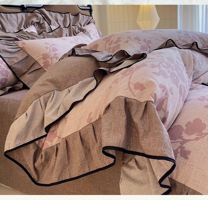 丝芙妮家居(原乐视家纺) 2025新款A类原麻复合印花花边四件套 云栖