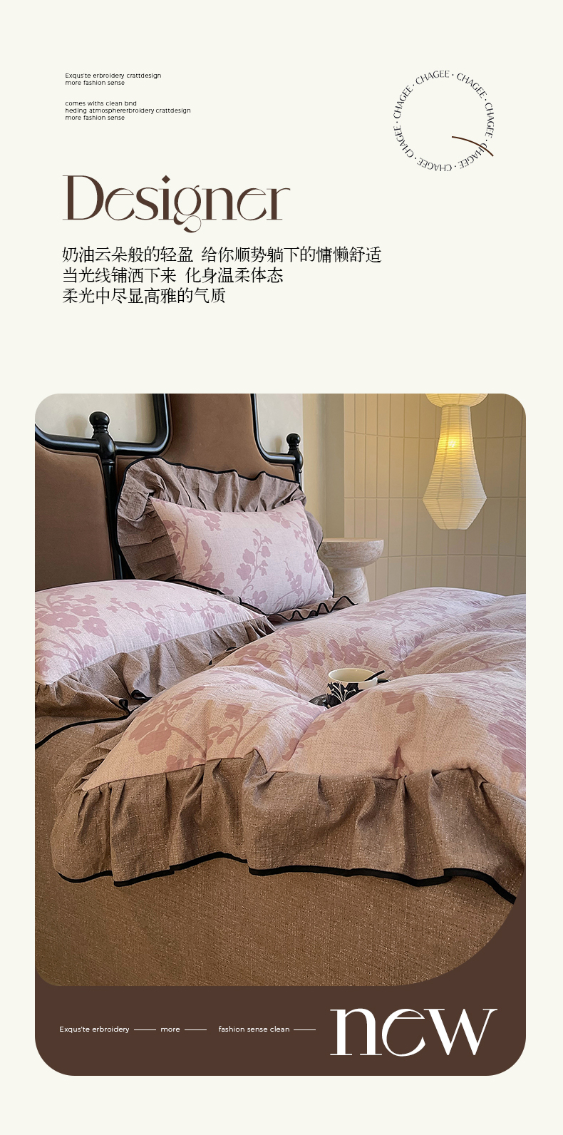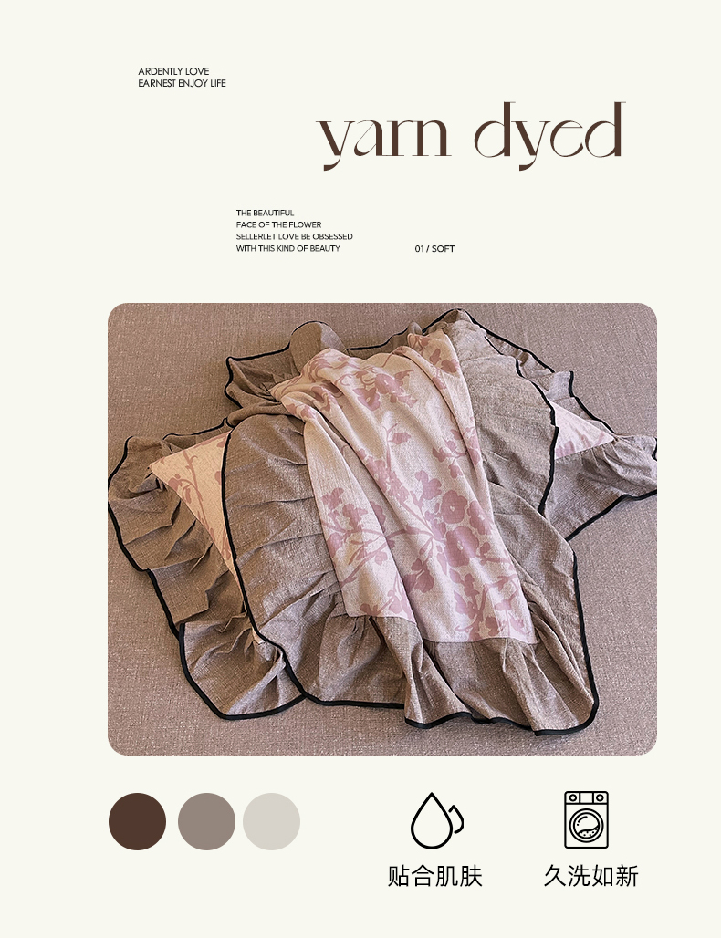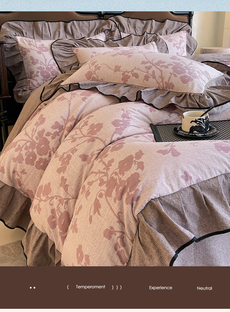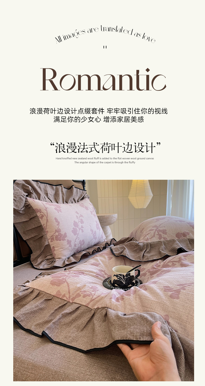 丝芙妮家居(原乐视家纺) 2025新款A类原麻复合印花花边四件套 云栖