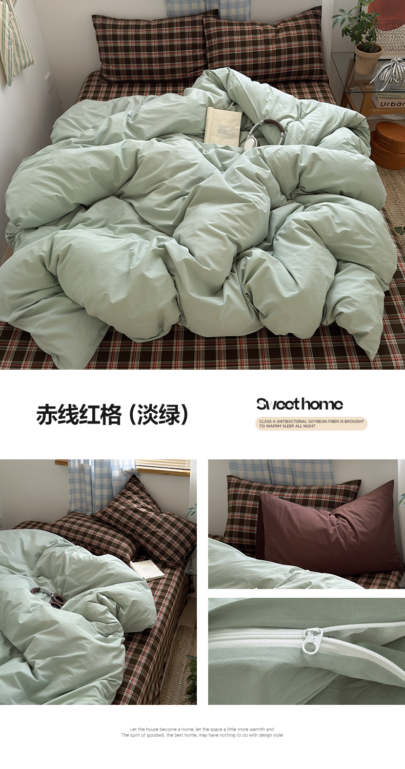 当前位置: 91家纺网 > 商品网购 > 床品套件 > 四件套 > 其它四件套 > 玖弘家居 2025新款纯色被套格子单混搭四件套 海岸蓝格-浅蓝(枕套格子)