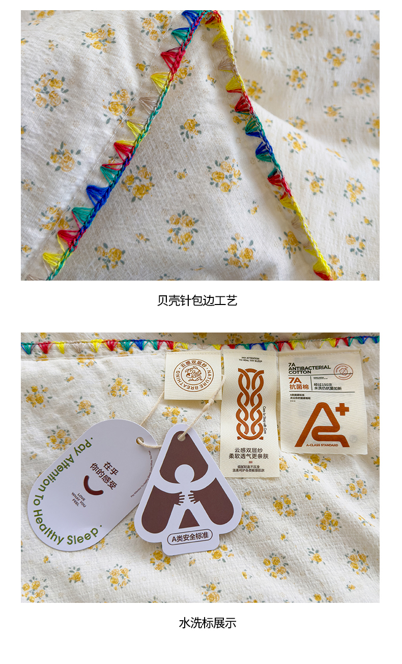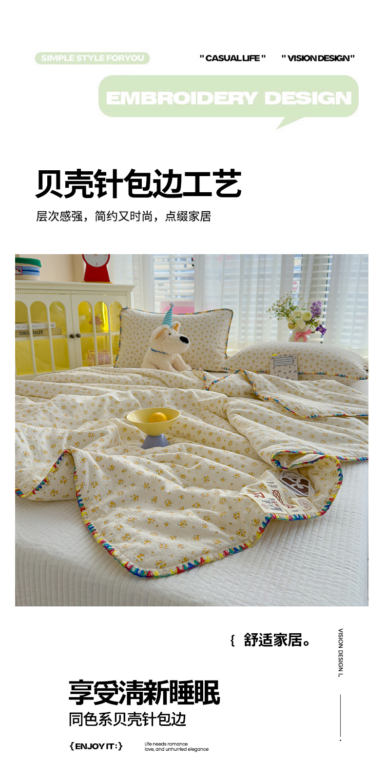 商品名称:澜妃 2025新款云感双层纱抗菌贝壳边夏被夏凉被空调被 贝壳边-橘子海