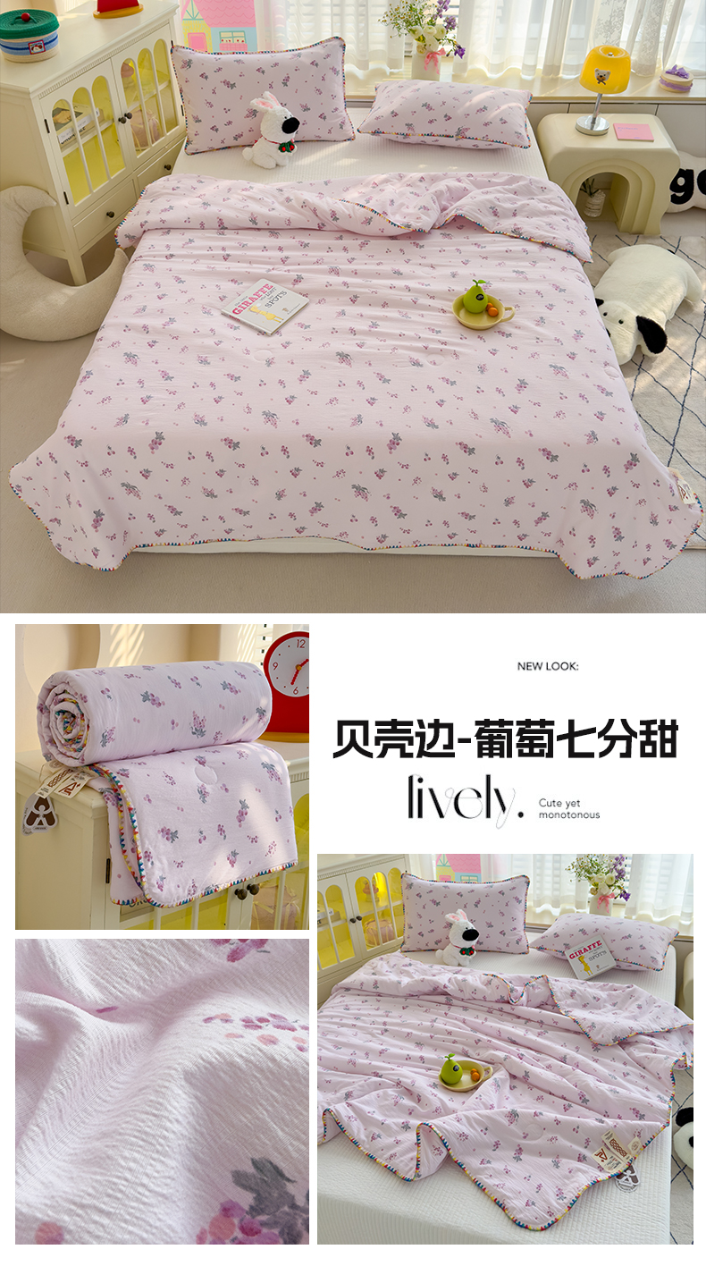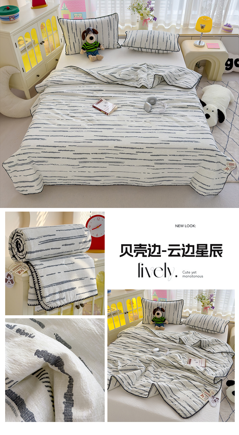澜妃 2025新款云感双层纱抗菌贝壳边夏被夏凉被空调被 贝壳边-橘子海