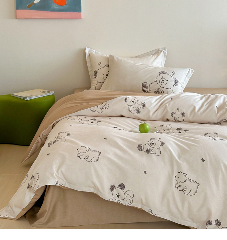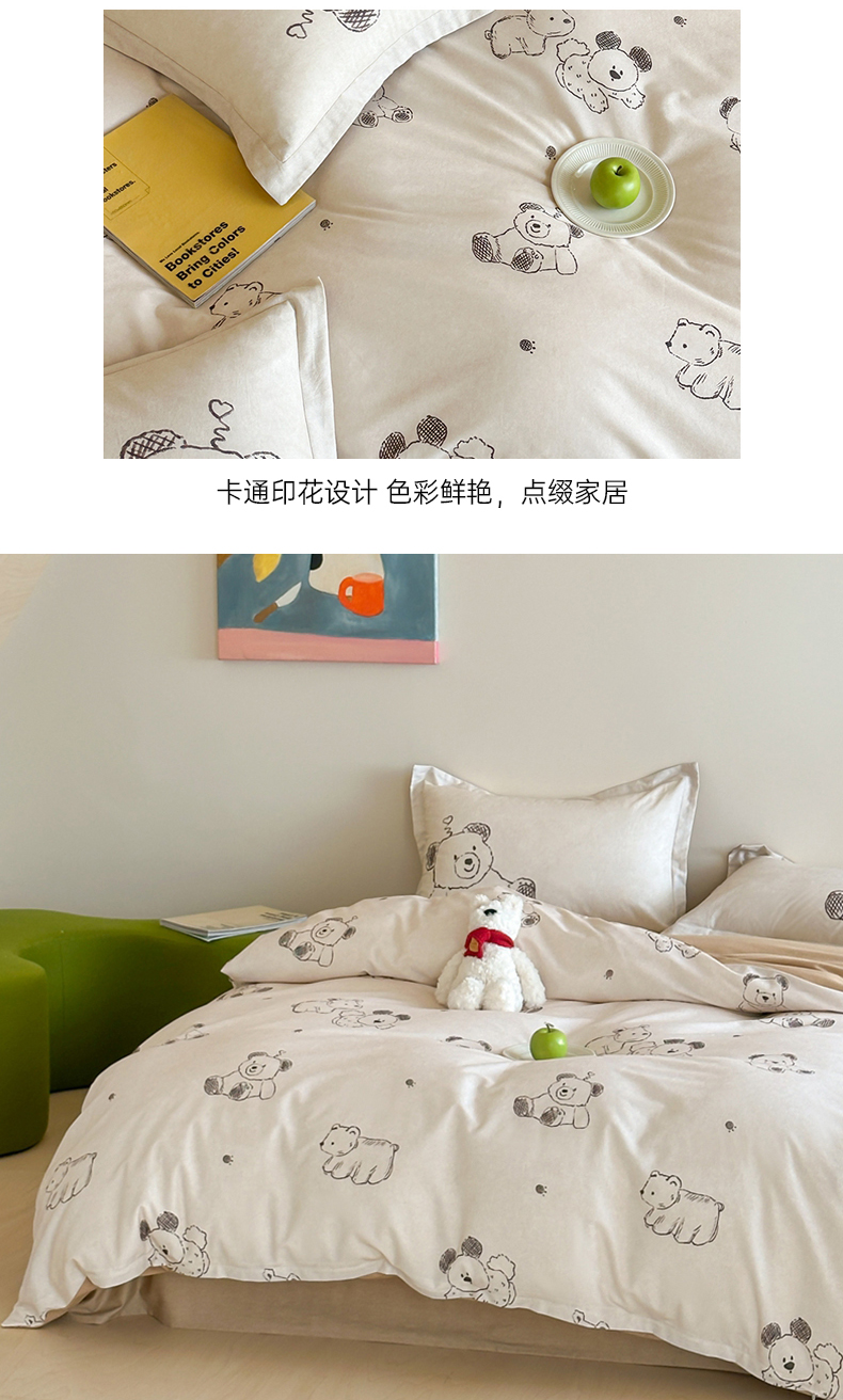 商品名称:时年家纺 2025新款全棉磨毛大版卡通印花系列套件 趣味熊